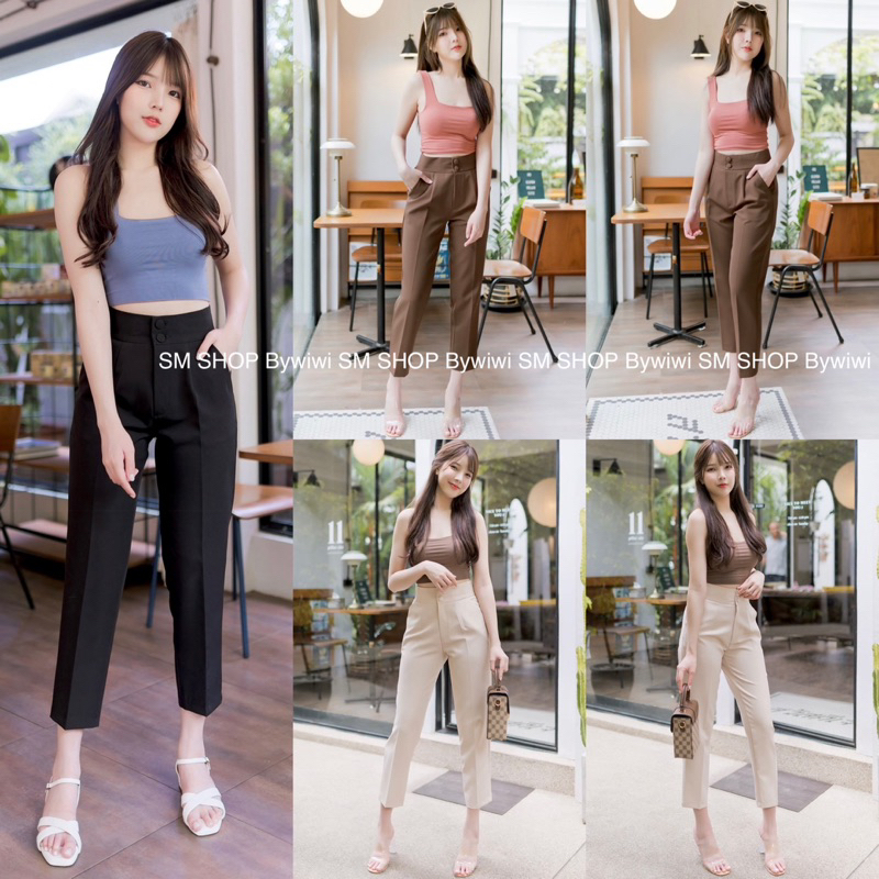 🚫🚫ระวังสินค้าเลียนแบบ กรุณาดูชื่อร้าน SMSHOP เพื่อความมั่นใจ🚫🚫 กางเกงทรงขากระบอก รุ่นกระดุมคู่ รุ่นนี้จะเป็นรุ่นเก็บก้นเก็บสะโพก เรียบหรูดูดี เพิ่มความมั่นใจให้กับสาวๆ รุ่นนี้สามารถใส่ทำงานหรือใส่เที่ยว แฟชั่นได้ทุกโอกาส สินค้าเป็นงานป้าย SMSHOP ทุกตัวนะคะ รุ่นนี้เป็นผ้าไอวี่และผ้าเปเป้ เนื้