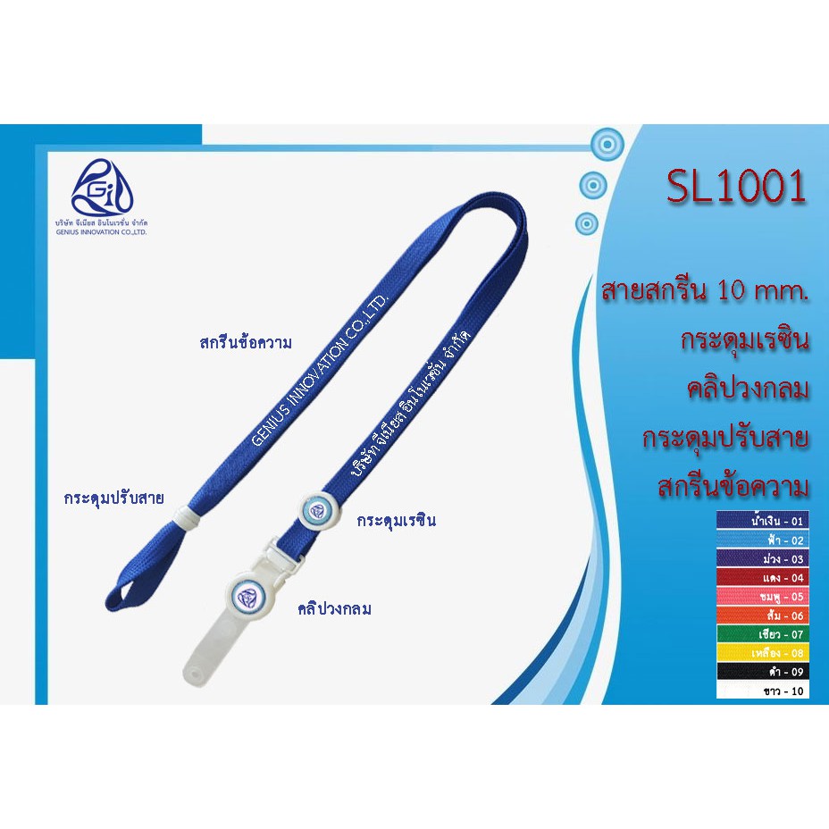 SL1001 DFT สายคล้องบัตร พร้อมสกรีนชื่อสีขาว ขนาด 10 mm.