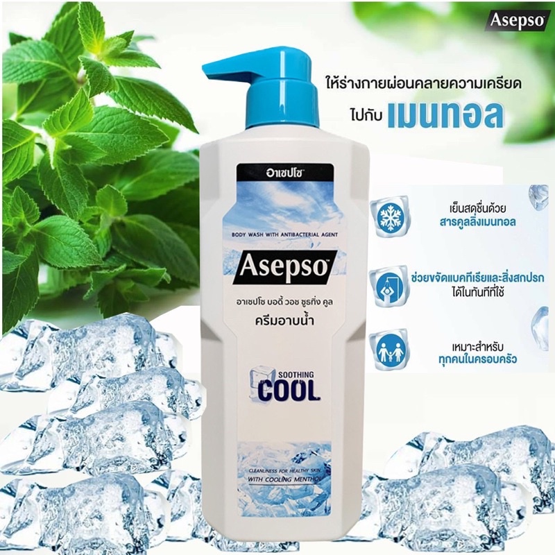... -6400015481 สูตรไฮจินิค เฟรช : ครีมอาบน้ำ อาเซปโซ สูตรไฮจินิค เฟรช ชำระล้างสิ่งสกปรกและแบคทีเรีย มีแทนนิน และแซนโธน และสารต้านอนุมูลอิสระในกลุ่มแซนโธน เป็นสกัดจากเปลือกมังคุด ช่วยดูแลผิวหนัง ลดอาการอักเสบ ที่เป็นสาเหตุของปัญหา ผดผื่นคัน สิว กลิ่นกาย และ น้ำกัดเท้า พร้อมกลิ่นหอมสดชื่น เลขที่ใบรับแจ้ง: 10-1-5706036 สูตร ซูธทิ่ง คูล : ครีมอาบน้ำ อาเซปโซ สูตรซูธทิ่ง คูล เป็นสูตรเย็นที่ให้ความเย็น สดชื่น ด้วยสารคูลลิ่ง เมนทอล (Menthol) เป็นสารสกัดจากใบมิ้นท์ มีสรรพคุณให้กลิ่นหอม เมื่อสัมผัสกับผิวหนังทำให้รู้สึกเย็น แต่ยังคุณสมบัติแบรนด์อาเซปโซ ที่ช่วยชำระล้างแบคทีเรียที่เป็นสาเหตุของปัญหาผิวหนัง เลขที่ใบรับแจ้ง: 10-1-6300008530