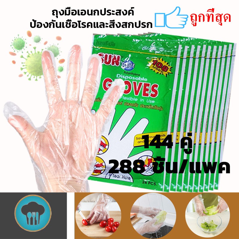 ... และ งานทั่วไป ผลิตจากพลาสติกอย่างดี food grade สามารถใช้จับหรือหยิบอาหารได้หรือใช้สวมเพื่อทำความสะอาด ข้อแนะนำ ใช้แล้วไม่ควรนำกลับมาใช้อีก ซื้อไปใช้ก็คุ้มค่า ซื้อไปขายก็กำไร Multipurpose gloves. Sold by the pack. 12 packs (144 pairs /288 pieces). 12 packs, 24 pieces per pack. Used to wear both hands Used to pick up and prevent dirt. Used for kitchen work, garden work and general work. Made of good plastic, FOOD GRADE can be used to hold or pick up food or wear it for cleaning. Recommendations: Once used, it should not be reused.