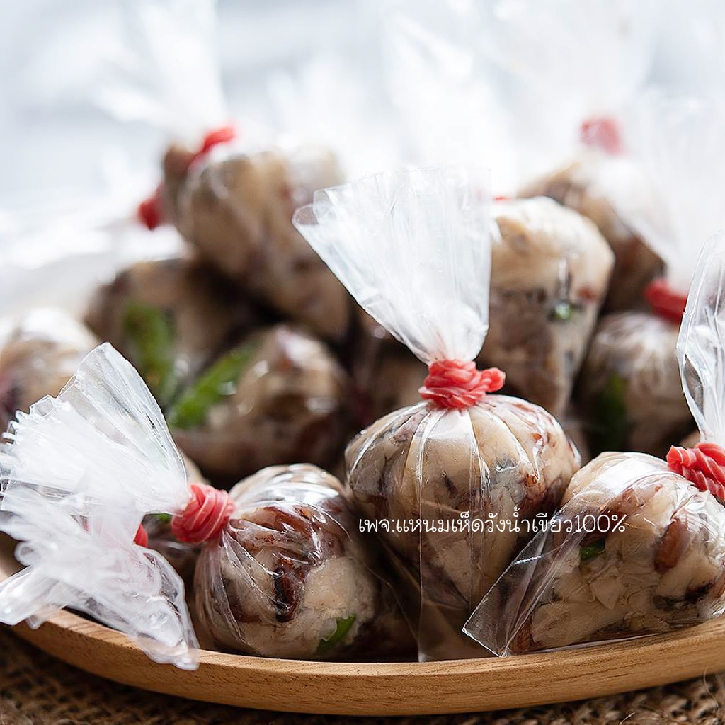 "แซ่บ" เต็มคำ เด็ดโดนใจ แหนมเห็ดวังน้ำเขียว รวมเห็ด3 อย่าง เห็ดหอม เห็ดนางฟ้าภูฏาน เห็ดโคนญี่ปุ่น ผสมข้าวกล้อง แหนมเห็ดห่อละ 100฿ (น้ำหนัก 250กรัม มี 20-25ชิ้น)
