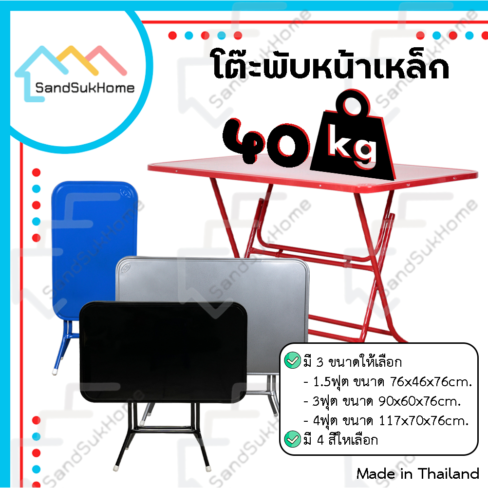 SandSukHome โต๊ะพับหน้าเหล็ก ขนาด 1.5ฟุต / 3ฟุต / 4ฟุต ขาเหล็กกลมไขว้ สามารถพับเก็บได้