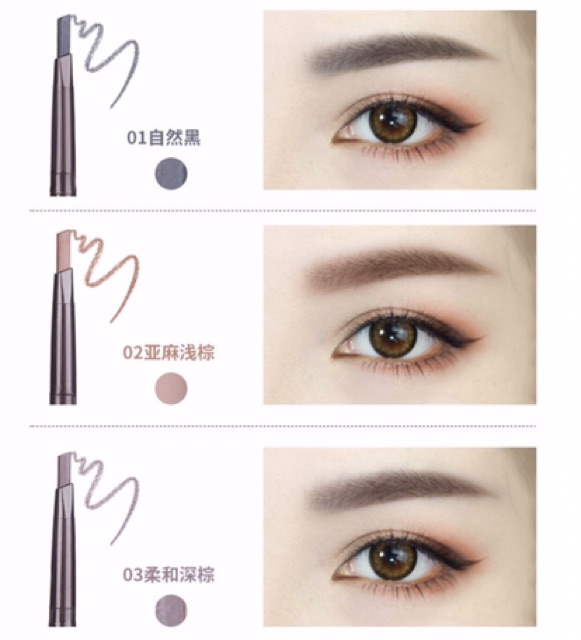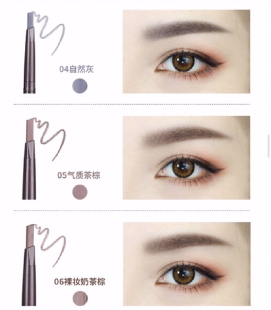 ใหม่ล่าสุด ดินสอเขียนคิ้วจาก lameila แบบหมุนออโต้ ตัวแท่งมีสองด้าน ด้านที่เป็นตัวดินสอคิ้วอัดแท่งหัวตัด ส่วนอีกด้านเป็นแปรงปัดคิ้ว สำหรับเกลี่ยสี จัดแต่งทรงคิ้ว ให้ดูเป็นธรรมชาติ มีคุณสมบัติ ให้ความติดทน กันน้ำ กันเหงื่อ เนื้อเนียนไม่เป็นก้อน ใช้งานง่าย เน้นความเป็นธรรมชาติ ทางร้านพร้อมจำหน