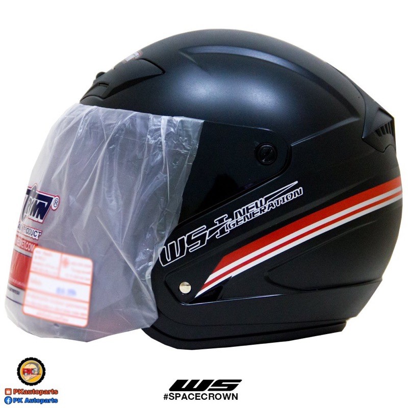 หมวกกันน็อคยี่ห้อ spacecrown รุ่น WS2 ไซส์ M รอบหัว 57-58 เซนติเมตร กระจกหน้าหมวก ดำ กันแดดประมาณ 60%