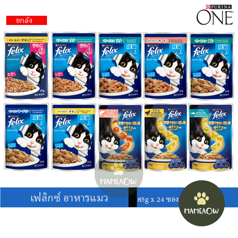 Purina Felix เพียวรีน่า เฟลิกซ์ อาหารแมวแบบซอง 85gx24ซอง(ยกลัง)