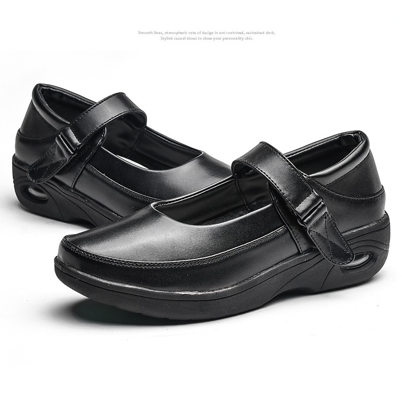 น้ำหนักเบา ทนทาน มีมาตรฐาน -พื้นรองเท้านิ่ม เดินสบาย ไม่เจ็บเท้า -ใส่ยืน เดินได้นาน ไม่ปวดขา -ทำความสะอาดง่าย แม้เปื้อนเลือด-สิ่งคัดหลั่ง -เหมาะสำหรับผู้ที่ต้องการถนอมเท้า -เหมาะสำหรับผู้ที่ต้องเดิน ยืนนา ส้นสูงส้นกลาง (3-5CM) สีทึบ วัสดุ PU อย่างเดียว วัสดุตาข่ายด้านใน ความสูงตอนบนต่ำ ส้