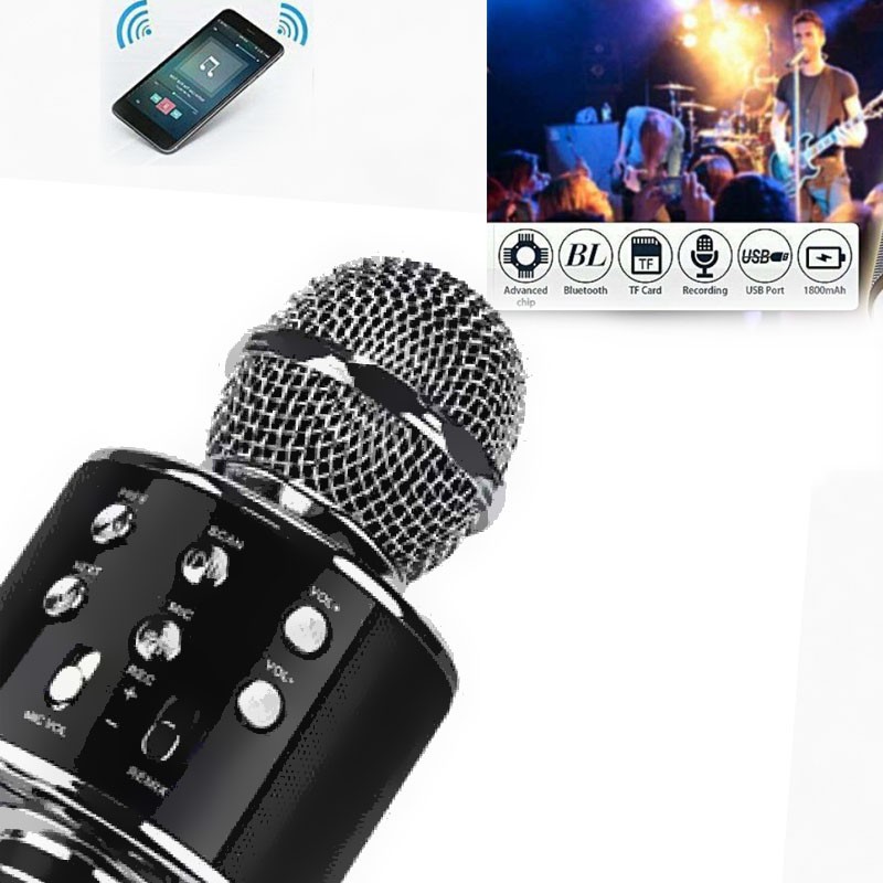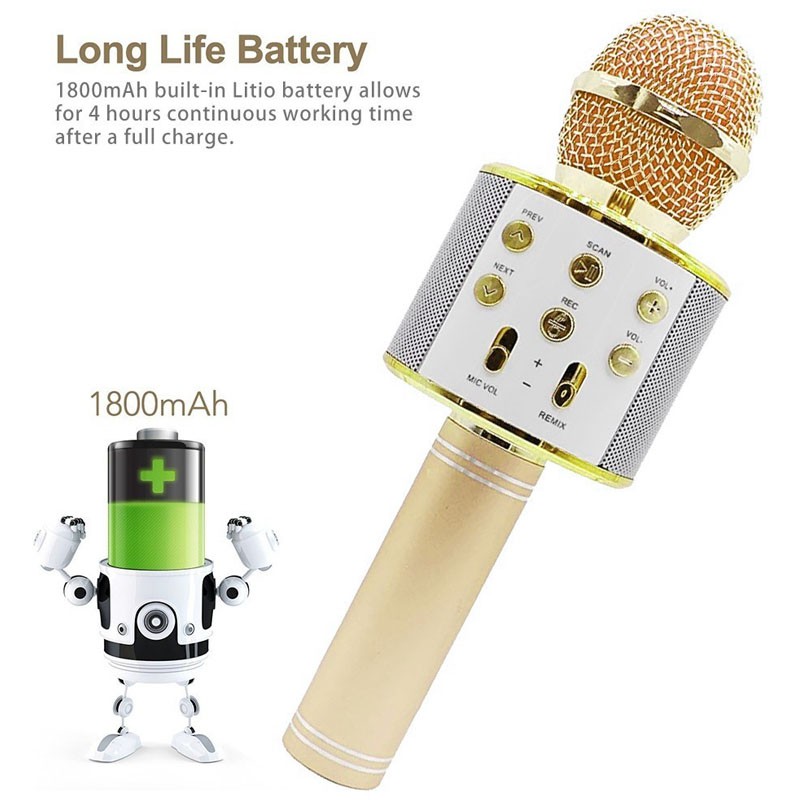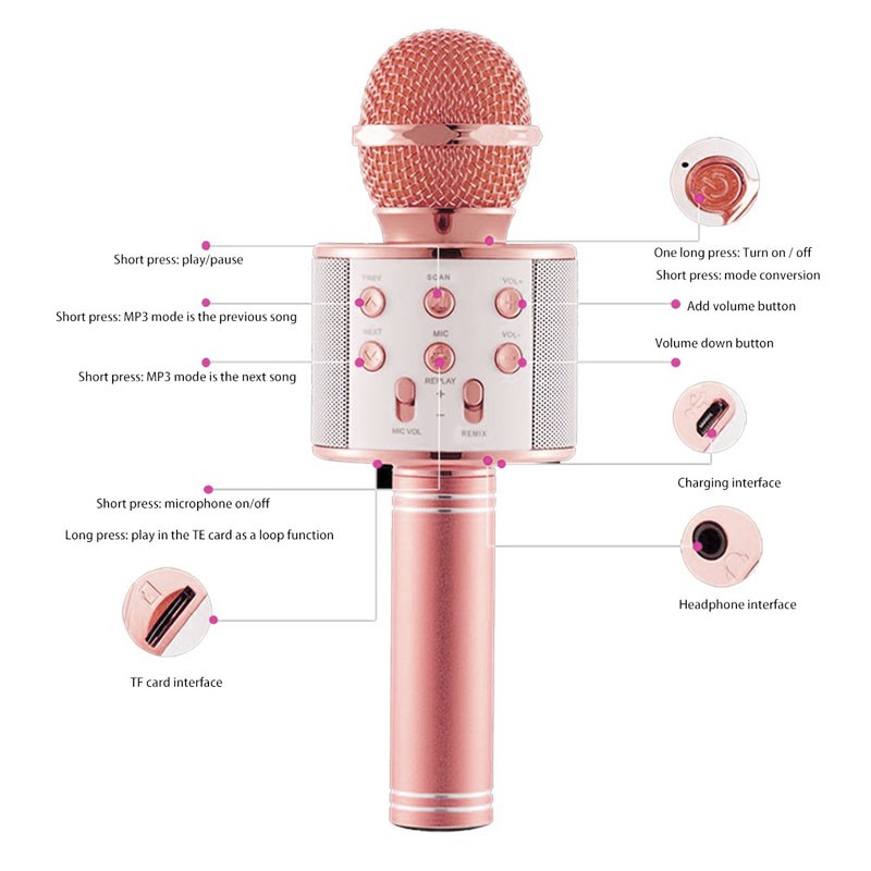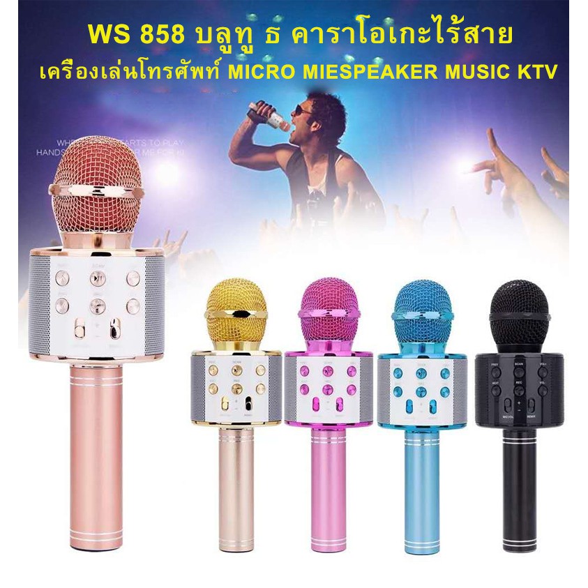 WS-858 เครื่องเล่นคาราโอเกะ บลูทูธไร้สาย ไมโครโฟนคอนเดนเซอร์***สีโรสโกลทางร้านจะสุ่มสีให้ค่ะ***