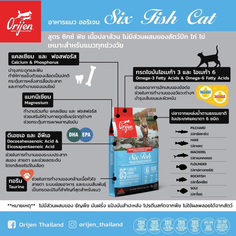 Orijen โอริเจน แคท แอนด์ คิทเท่น Orijen cat & kitten & Sixfish Gaudian8 สูตรลูกแมวและแมวโต 1.8 kg
