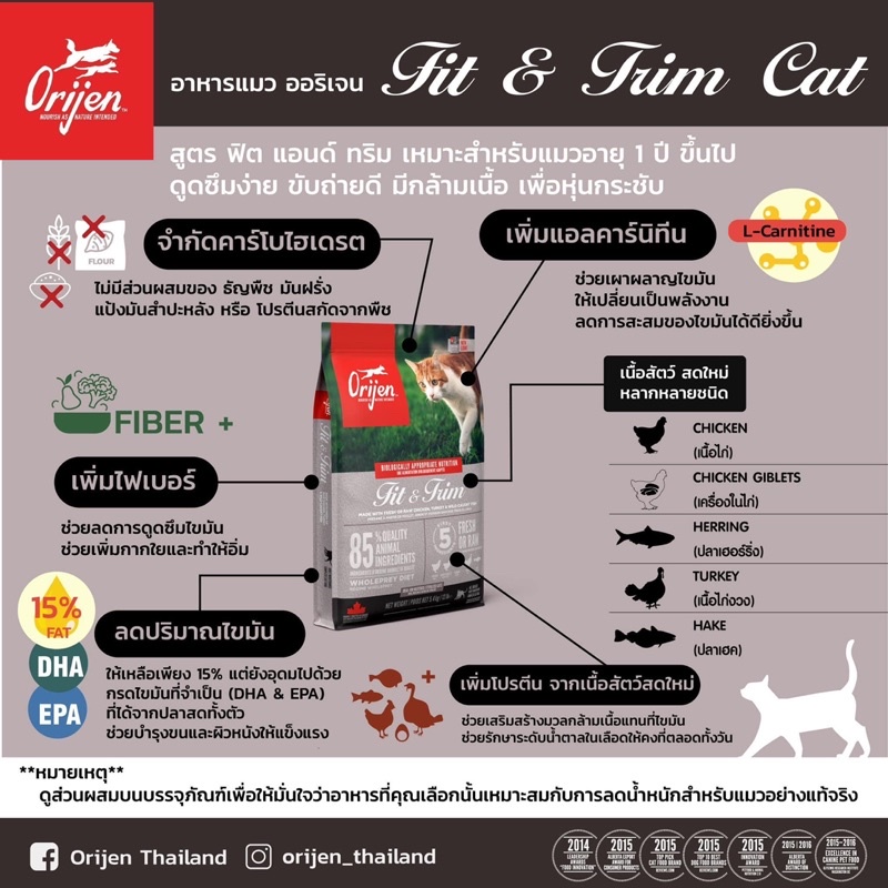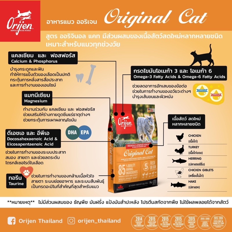 🚛 ส่งสินค้าทุกวันตัดรอบ 9 โมงนะคะ 📦 แอบเลี้ยง ปกปิดสินค้าแจ้งได้เลยค่ะ ORijen cat & kitten 1.8 กิโลกรัม โอริเจน แคท แอนด์ คิทเท่น สูตรสำหรับ ลูกแมว และ แมวโต - ผลิตจากวัตถุดิบที่ดีและสดที่สุดจากแคนาดาในครัวระดับรางวัลชนะเลิศ - ประกอบไปด้วยเนื้อสดคุณภาพดีหลากหลายชนิด ตับ กระเพาะ กระดูกอ่อนแ