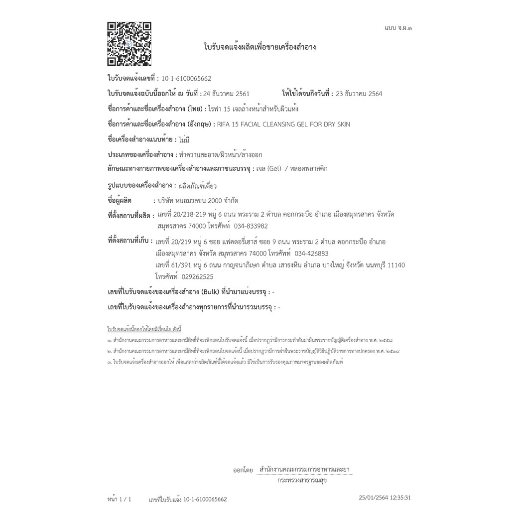 หมอมวลชน ไรฟา 15 เจลล้างหน้า (ชมพู) RIFA15 Cleansing Gel for Dry Skin