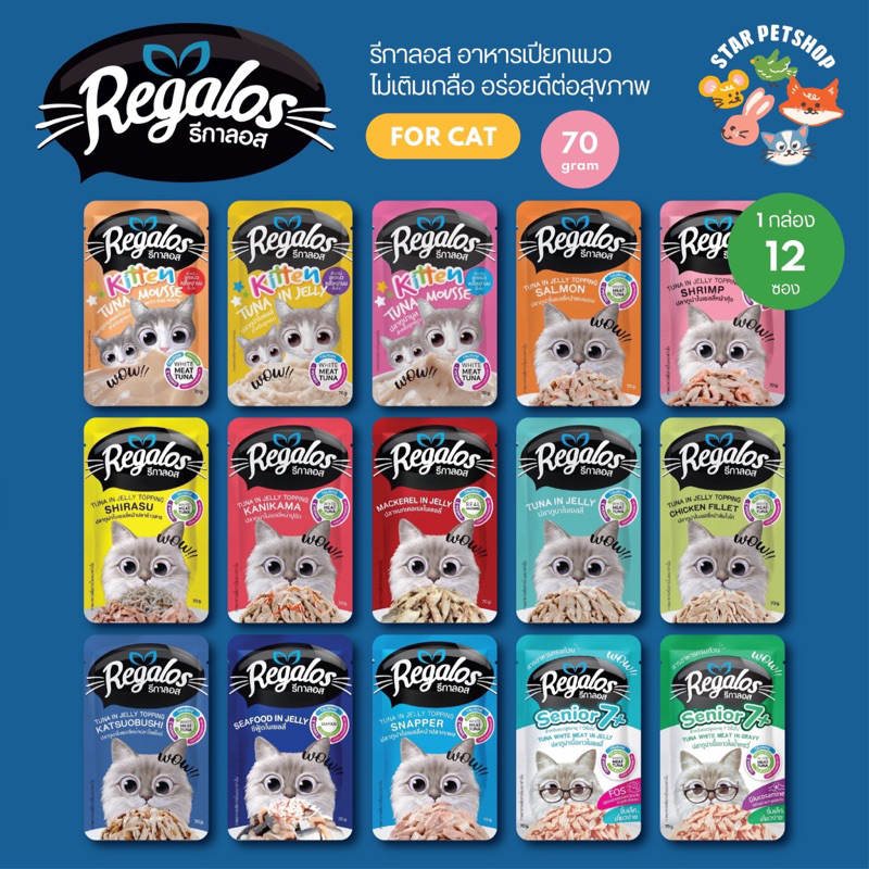 Regalos รีกาลอส อาหารเปียกแมว ไม่เติมเกลือ สำหรับแมวเด็ก แมวโต และแมวสูงวัย ขนาด70g*12ซอง