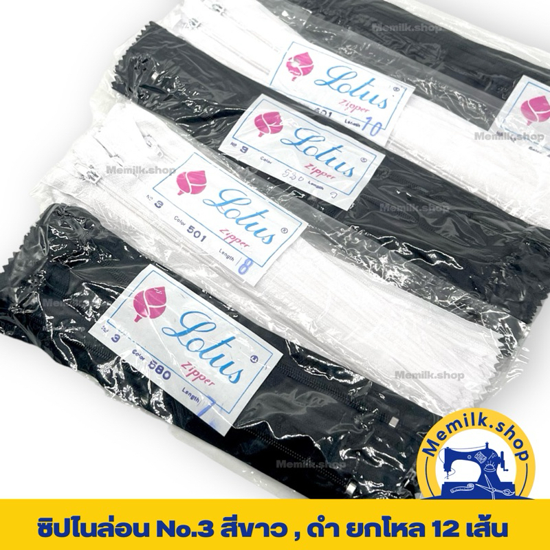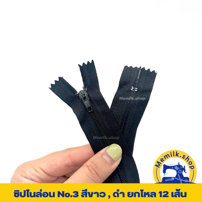 ซิปไนล่อนเบอร์ 3 สีขาว - สีดำ เเพคยกโหล 12 เส้น ขนาด 5 นิ้ว - 20 นิ้ว ( ไม่ใช่ ซิปซ่อน นะคะ )