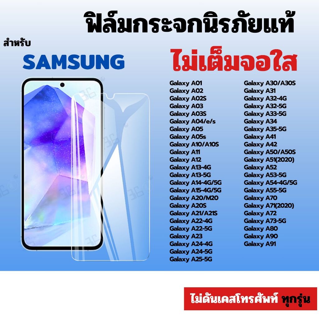 ฟิล์ม ฟิล์มกระจก ใส สำหรับ Samsung นิรภัยใส กันรอย ทุกรุ่น! A01 A02S A10/A10S A12 A15-4G/5G A80 A91