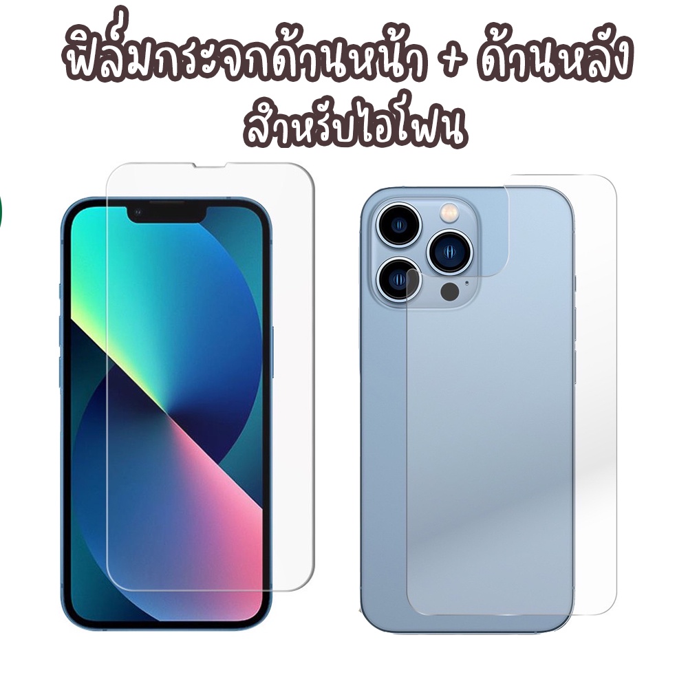 ฟิล์มกระจกหน้า + หลัง สำหรับไอโฟน 6 6S 7 7 8p SE2 SE3 X Xs 11 13pro 11 12 12PROMAX 13 13MINI 13PROMAX 14 16PROMAX