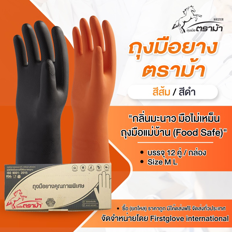 [ยกโหล]ราคาถูก ถุงมือแม่บ้าน (ตราม้า)ชนิดหนา ขายยกโหล 12 คู่ ฟู้ดเกรด ขายส่ง ส่งตรงจากโรงงาน