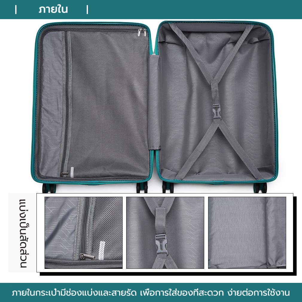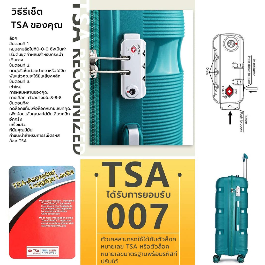 ... version and the normal version have both 2 brands, 2 logos, Siam Choice and Sea Choice, but the quality is the same,the factory is the same. And also provide 5 years warranty as well. If you mind the logo problem, please do not place an order. 📍ขนาด 20นิ้ว ยาว39ซม. กว้าง23ซม. สูง56ซม. น้ำหนัก 2.56กก. ขนาด 24นิ้ว ยาว44ซม. กว้าง27ซม. สูง65ซม. น้ำหนัก 3.27กก. ขนาด 28นิ้ว ยาว49ซม. กว้าง30ซม. สูง75ซม. น้ำหนัก 4.12กก. ✅ 【วัสดุPP】 Polypropylene (โพลิโพรพิลีน) เป็นพลาสติกที่มีความแข็ง ทนต่อแรงกระแทกได้ดี ทนต่อสารเคมี ความร้อน มีความแข็งแรงและยืดหยุ่น เป็นวัสดุแบบใหม่ที่ถูกนำมาใช้ผลิตกระเป๋าเดินทาง แต่จะมีน้ำหนักมากกว่า PC เหมาะกับคนที่ชอบกระเป๋าเดินทางที่แข็งแรง แต่ยืดหยุ่น ไม่แตกหักง่าย ✅【4 สปินเนอร์ ล้อ + TSA ล็อค】ล้อสปินเนอร์แบบหลายทิศทางเคลื่อนที่อย่างราบรื่นและเงียบ หมุนได้ 360° กระจายน้ำหนักของกระเป๋าเดินทางของคุณอย่างเท่าเทียมกัน และรับประกันว่าจะสามารถร่อนผ่านสนามบินหรือสถานีรถไฟที่พลุกพล่านได้อย่างง่ายดาย ด้วยการล็อค TSA เจ้าหน้าที่รักษาความปลอดภัยของสนามบินสามารถเปิดกระเป๋าเดินทางได้โดยใช้กุญแจพิเศษโดยไม่ต้องเปิดกระเป๋าจนเสียหาย ให้ความปลอดภัยสูงสุด ✅【ด้ามยืดไสลด์ + ด้ามสั้น】ด้วยปุ่มกดแบบยืดหดได้ คุณไม่จำเป็นต้องปวดหลัง และคุณยังสามารถวางกระเป๋าใบเล็กและของสำคัญไว้ด้านบนได้อีกด้วย ที่จับด้านบนและด้านข้างแบบ Soft touch มีประโยชน์เมื่อยกกระเป๋าเดินทางที่มีน้ำหนักมาก ชุดกระเป๋าเดินทาง 3 ชิ้นที่มีสไตล์และใช้งานได้จริงเพื่อการเดินทางที่แสนสุขของคุณ ✅【 พื้นที่ภายใน】 วัสดุด้านในเป็นซับในโพลีเอสเตอร์ ซับในทั้งตัว สายรัดสำหรับเก็บของสำหรับเก็บเสื้อผ้าของคุณเข้าที่ เช่นเดียวกับกระเป๋าซิปแบบแบ่งช่องพร้อมกระเป๋าตาข่ายด้านในแบบมีซิปสำหรับทุกสิ่งที่คุณต้องการแยกเก็บไว้ต่างหาก ชุดกระเป๋าเดินทางแฟชั่นไม่เพียงแต่เป็นเครื่องมือที่สมบูรณ์แบบสำหรับตัวคุณเอง แต่ยังเป็นของขวัญที่น่ารักสำหรับครอบครัวของคุณอีกด้วย เพื่อนหรือเด็กนักเรียน ✅ซิป YKK: กระเป๋าเดินทางใบนี้มีซิป YKK ซึ่งใช้ในกระเป๋าเดินทางแบบแข็งยี่ห้อหรูส่วนใหญ่ ใช้ด้าย 5 เส้น ป้องกันฟันยางเสียรูปและยกตัว แข็งแรงกว่าซิปทั่วไป 3 เท่า (ซิปธรรมดาใช้ด้าย 2 เส้นเท่านั้น) 🚚 ทางร้านขอแจ้งให้ทราบว่า ทางร้านใช้ขนส่งของทาง Shopee ไม่ได้ขนส่งเองค่ะ จัดส่งสินค้าภายใน 24 ชั่วโมงจากกรุงเทพฯ ได้รับสินค้าภายใน 1-7 วัน (ยกเว้นสถานการณ์พิเศษ,วันหยุดนักขัตฤกษ์และเสาร์-อาทิตย์) ทั้งนี้ทั้งนั้นขึ้นอยู่กับขนส่งของแต่ละพื้นที่ด้วยนะครับ ⭐เงื่อนไขรับประกันเป็นไปตามกำหนด 1.ล้อหัก ล้อกระแทก ล้อฝืดและล้อเสียหาย 2. หากซิปแตกหรือตัวดึงซิปขาด รับประกันเฉพาะซิปด้