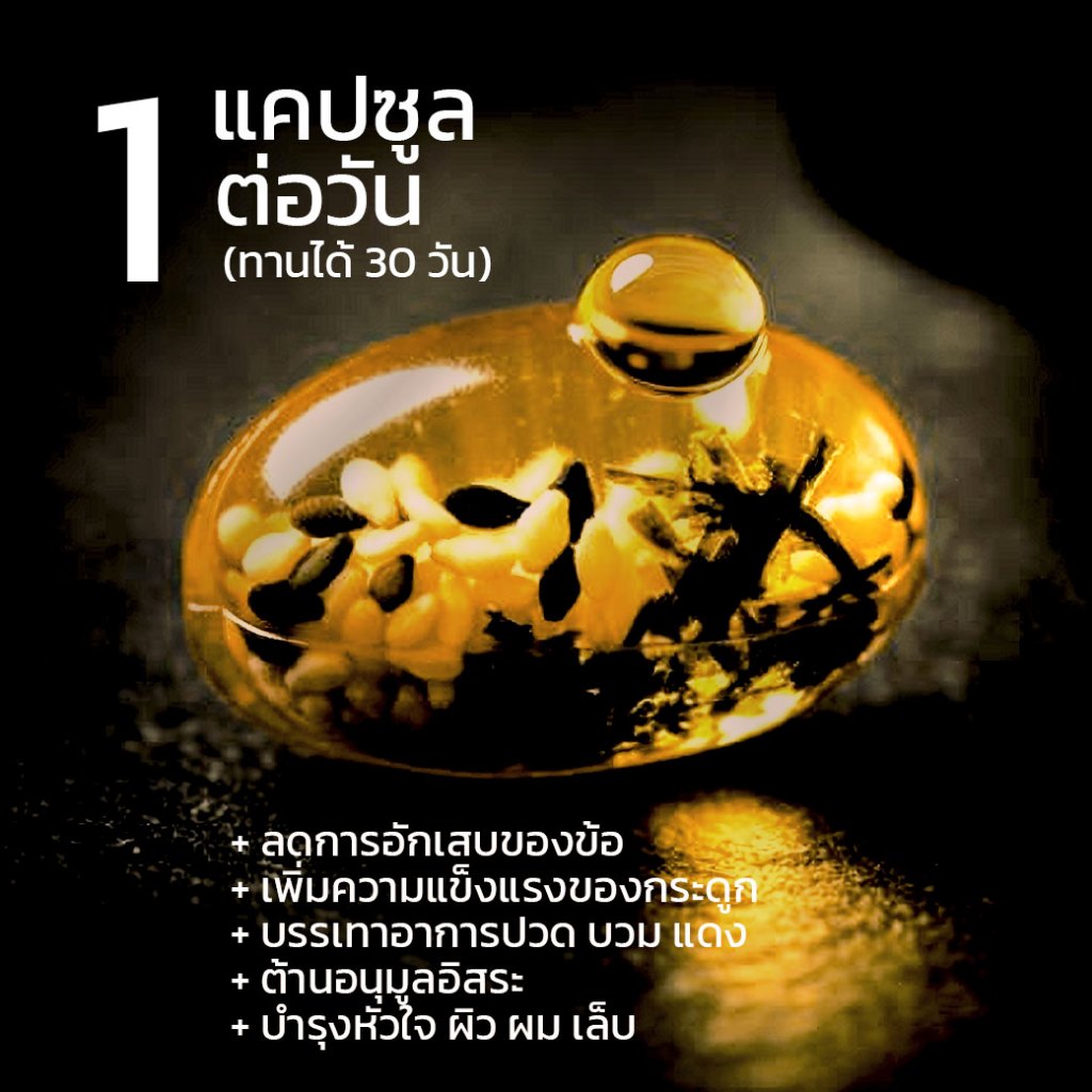 ... หลายคนอาจจะยังไม่รู้ว่า งามีแคลเซียมสูงกว่านม 3 เท่า และยังอุดมไปด้วยกรดไขมันที่จำเป็นต่อร่างกายอีกด้วย นอกจากนี้ ยังมีงานวิจัยระบุว่า สารเซซามินที่พบในงาดำ มีสรรพคุณช่วยยับยั้งการเสื่อมของกระดูก (ต้นเหตุของโรคข้อเสื่อม และกระดูกพรุน) กรดไขมันโอเมก้า 3 มีสรรพคุณช่วยลดการอักเสบและอาการปวดข้อต่อและกระดูก , ลดอาการตึงแน่นหรือข้อยึดในตอนเช้า (อาการที่มักพบบ่อยในผู้ป่วยเรื่องข้ออักเสบ) 2. น้ำมันงาขี้ม้อน ตามตำราแพทย์แผนจีนระบุไว้ว่า น้ำมันงาขี้ม้อน มีสรรพคุณช่วยบำบัดอาการไข้หวัด, ไอ, หอบหืด, แน่นท้อง แน่นหน้าอก แล้วนั้น สารสำคัญในกลุ่ม Polyphenol ยังมีส่วนช่วยต้านการอักเสบ และต้านการแพ้ได้ดี นอกจากนี้ น้ำมันงาขี้ม้อนยังประกอบไปด้วย กรดไขมันไม่อิ่มตัว อาทิ โอเมก้า 3 และ โอเมก้า 6 : ที่ช่วยเรื่องระบบประสาทและความจำ วิตามิน อี : ที่มีอุดมไปด้วยสารต้านอนุมูลอิสระ ช่วยเรื่องการป้องกันระบบประสาท ปอด และกล้ามเนื้อ แคลเซียม และ ฟอสฟอรัส : ที่เพียงพอต่อการซ่อมแซมกระดูกและฟันไม่ให้เปราะหรือแตกง่าย และยังมีส่วนช่วยลดความเสี่ยงโรคกระดูกพรุนในผู้สูงอายุได้ 3. น้ำมันสาหร่าย (Algae Oil) จากสาหร่ายทะเล Schizochytrium sp. ซึ่งเป็นสาหร่ายทะเลขนาดเล็ก (microalgae) อุดมไปด้วยแคลเซียม ธาตุเหล็ก ไฟเบอร์ โฟเลต แมกนีเซียม และ DHA ซึ่งมีส่วนช่วยบำรุงสายตา และการทำงานของระบบประสาท นอกจากนี้ ในน้ำมันสาหร่ายยังมีสาร ที่มีประโยชน์ต่อร่างกาย เช่น สารฟูคอยแดน (Fucoidan) ที่มีฤทธิ์ต้านการอักเสบ สารโพลีแซคคาไรด์ (Polysaccharides) ช่วยเสริมสร้างภูมิคุ้มกัน ช่วยลดระดับน้ำตาลในเลือด สารฟิวโคแซนธิน (Fucoxanthin) ช่วยลดเร่งการเผาผลาญ ด้วยการสลายกรดไขมัน และเพิ่มพลังงานแก่ร่างกาย ผู้สูงอายุ 40-60 ปี ที่มีปัญหาข้อเข่า ผู้ที่ต้องการสารอาหารที่จำเป็นต่อการบำรุงกระดูก และข้อเข่า ผู้ที่แพ้อาหาร ทะเล และ นม แต่ต้องการสารอาหารที่จำเป็นต่อร่างกาย เช่น ไขมันดี และ แคลเซียม Vitanature+ (ไวตาเนเจอร์พลัส) น้ำมันงาดำ ผสมน้ำมันงาขี้ม้อน 1 แคปซูล ประกอบไปด้วย น้ำมันงาดำ (Black Sesame oil) : 500.00มก. น้ำมันงาขี้ม้อน (Perilla oil) 20.00มก. น้ำมันสาหร่าย (Algae oil ) 10.00มก. รับประทานวันละ 1 เม็ด หลังมื้ออาหาร (มื้อใดก็ได้) 2 ปี (นับจากวันผลิตสินค้า) ควรเก็บในอุณหภูมิห้อง หลีกเลี่ยงการเก็บในที่ชื้น หรือ ที่มีแสงแดด หากมีโรคประจำตัวควรปรึกษาแพทย์ก่อนรับประทาน เด็กและสตรีมีครรภ์ไม่ควรรับประทาน เป็นเพียงผลิตภัณฑ์เสริมอาหาร ไม่มีส่วนในการป้องกันหรือรักษาโรค Certificate of GMP จาก SGS (Thailand) Ltd. เลขที่ อย. 11-1-13958-5-0421