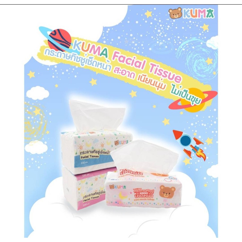 กระดาษทิชชู่เช็ดหน้า KUMA Facial Tissue ขนาด 230 แผ่น : 4 ห่อ