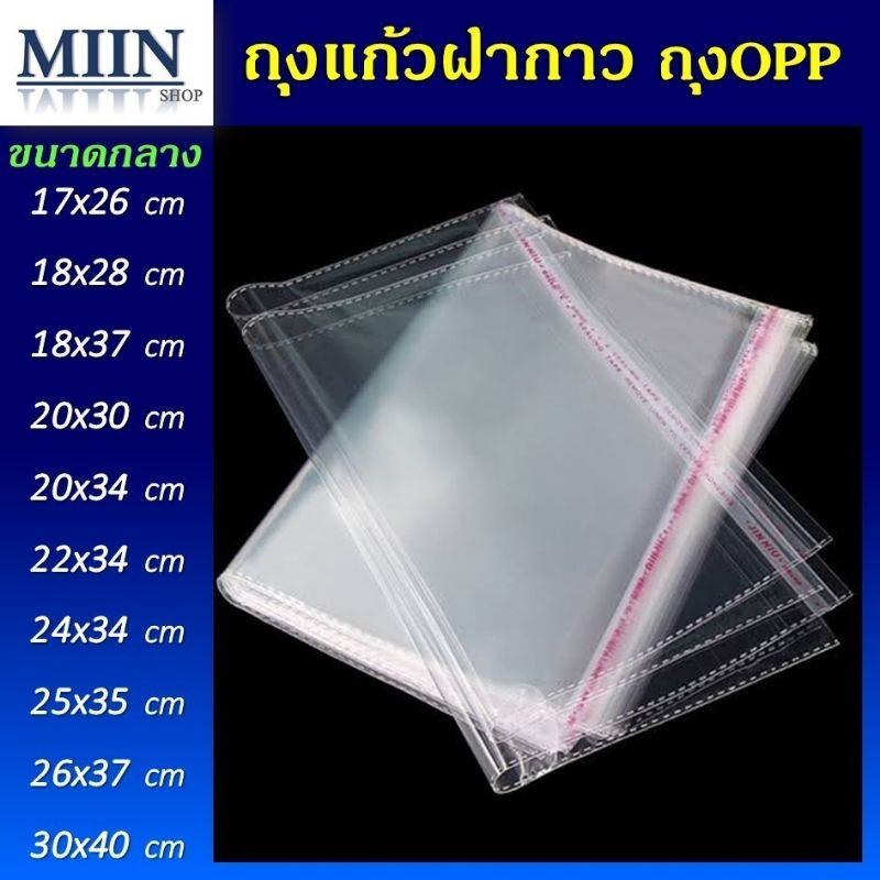 ถุงแก้วฝากาว OPP ขนาดใหญ่ (แพค100ใบ) ซองพลาสติกใส