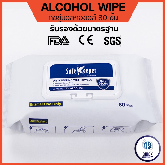 🔸 ทิชชู่เปียกแอลกอฮอล์ 70 - 75% ยี้ห้อ AST 🔸 ได้รับมาตรฐาน FDA CE SGS จึงปลอดภัยต่อรางกาย 🔸 ALCOHOL FOOD GRADE ปลอดภัยในการหยิบจับอาหาร วิธีใช้ ใช้เช็ดทำความสะอาดมือและเช็ดทำความสะอาดของใช้ต่างๆ ไม่ว่าจะเป็น 🔸โทรศัพท์ คอมพิวเตอร์ 🔸ราวจับ ลูกบิดประตู ปุ่มลิฟต์ 🔸โต๊ะทำงาน 🔸ของเล่นเด็ก 🔸