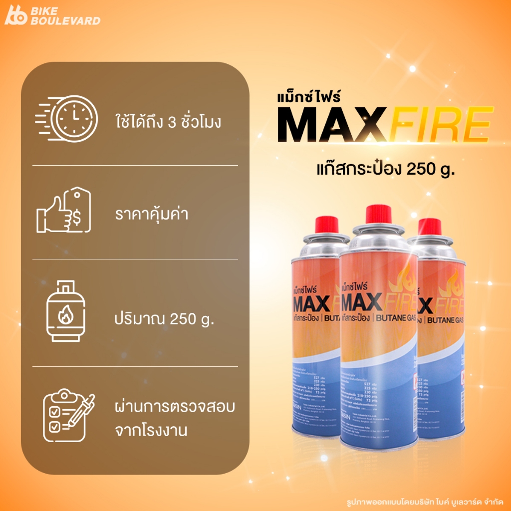 🔥🔥MAX FIRE MAXFIRE ก๊าซกระป๋อง จำนวน 3 กระป๋อง น้ำก๊าซ/กระป๋อง 250 กรัม แก๊สกระป๋อง ก๊าซกระป๋อง supergas แม็กไฟ super 🔥🔥 🔥🔥 ดีลเด็ดจากราคาโรงงาน สินค้าปลอดภัย 100% 🔥🔥 📌📌 ร้านค้า Bike Boulevard คัดสรรสินค้าคุณภาพดีมาขายเท่านั้น 🔹 ทุกกระป๋องแก๊สมีการตรวจสอบ QC อย่างละเอียดทุกครั้งจากโรงงานมั่น