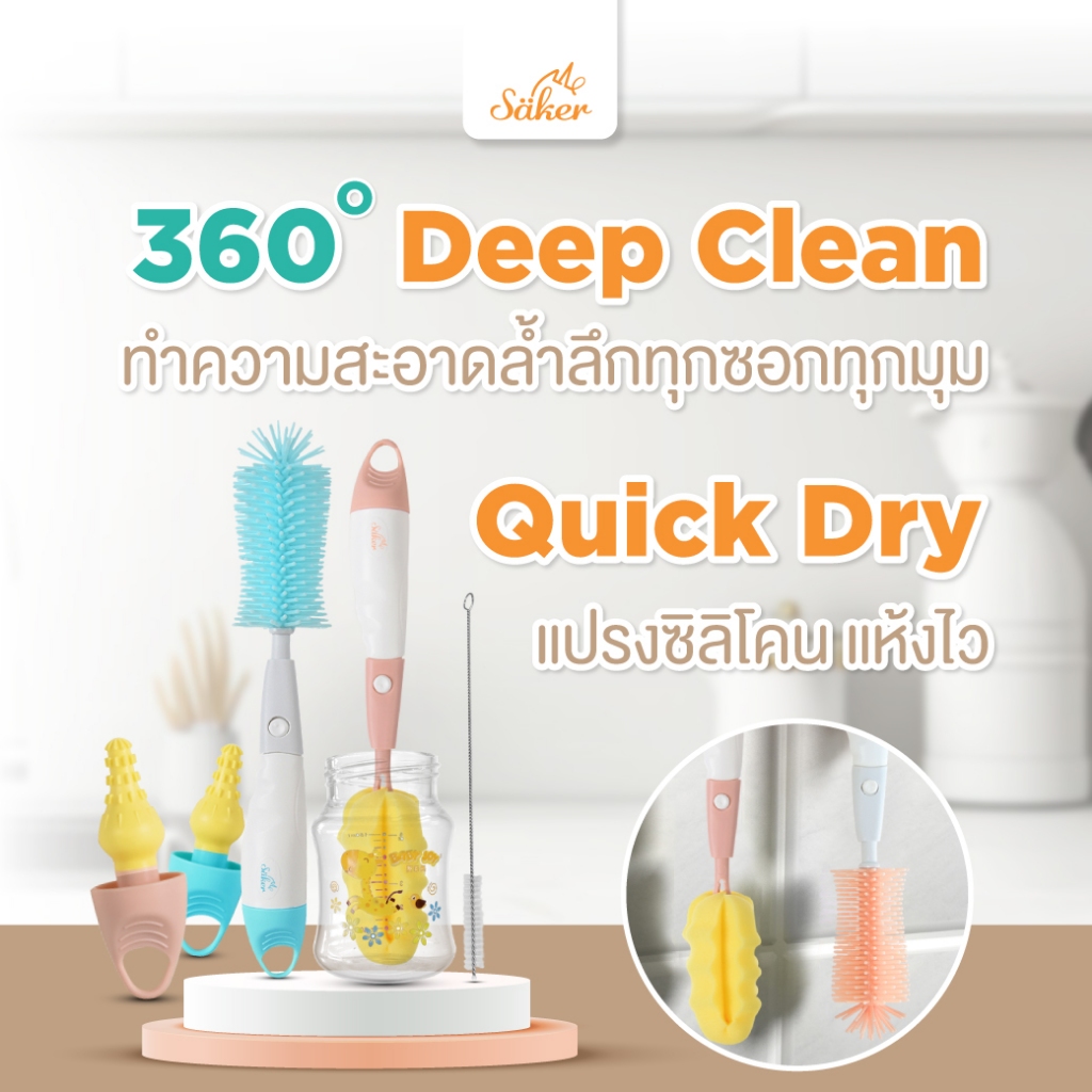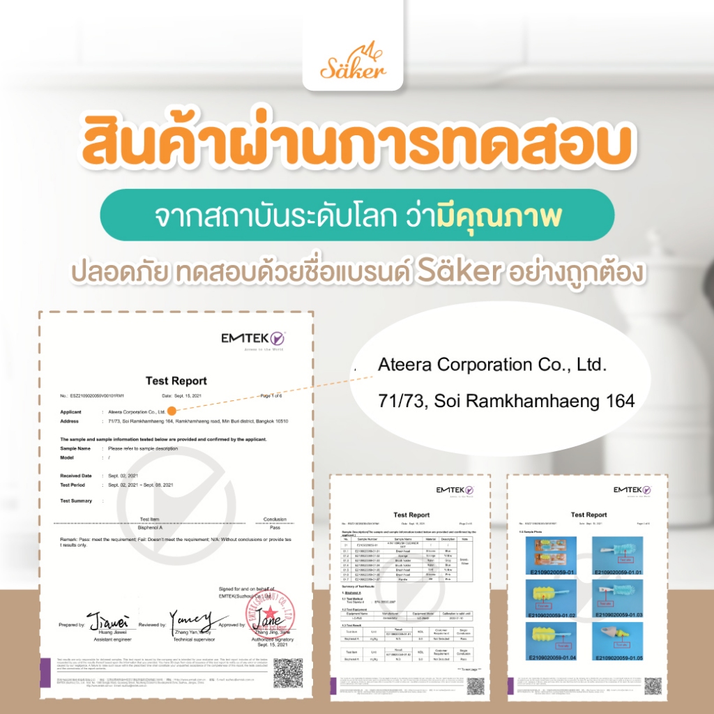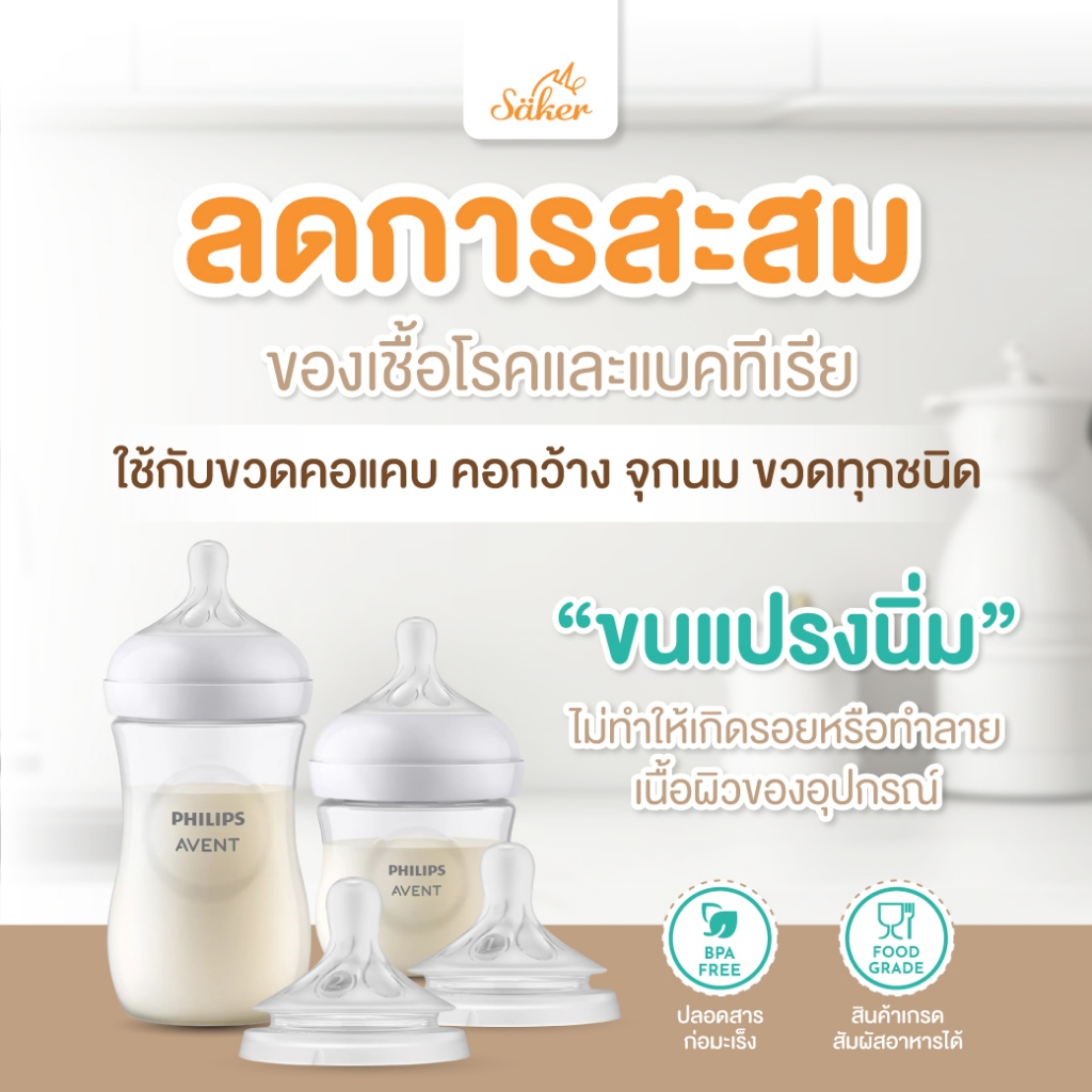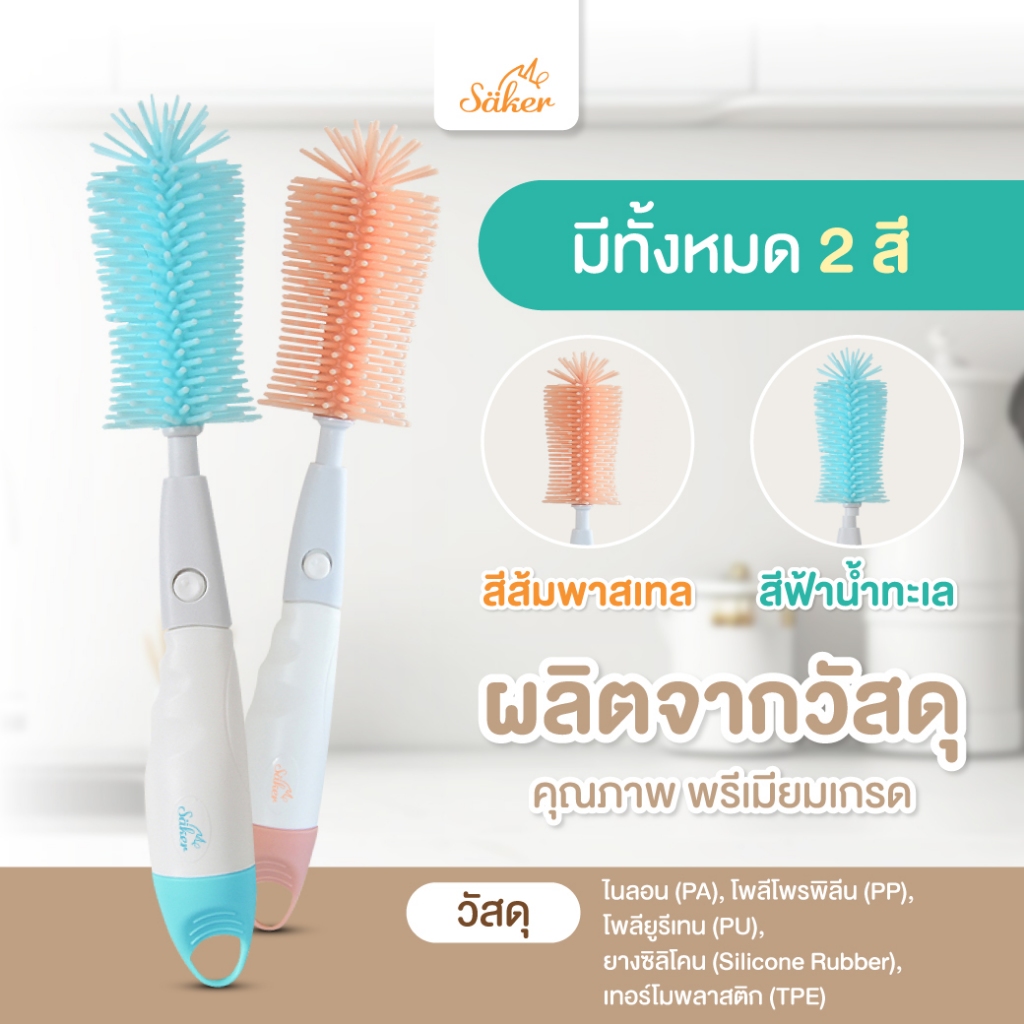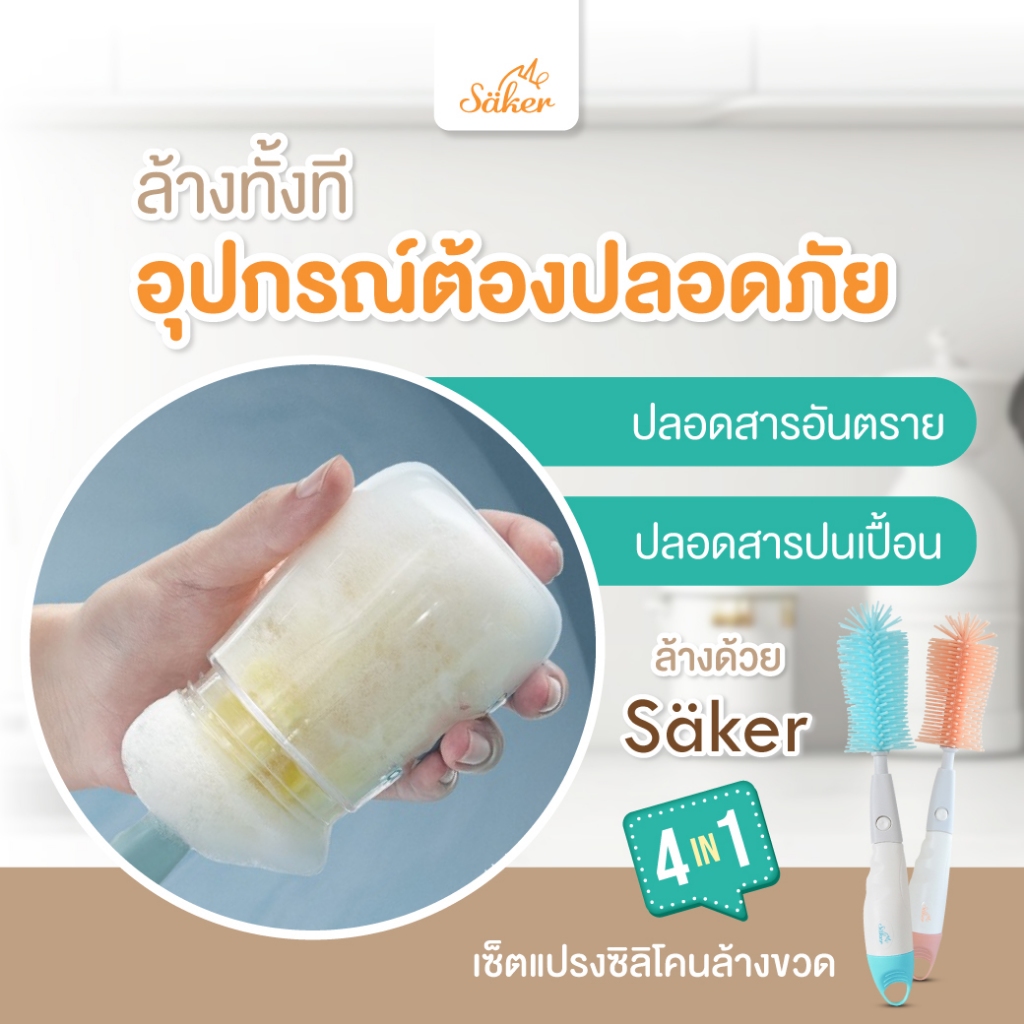 ... ใบเซอร์ติฟิเคทจากสถาบันระดับโลก ยืนยัน ว่าสินค้าปลอดสารพิษ ปลอดสารก่อมะเร็ง ไม่มีสารปนเปื้อนที่เป็นอันตราย 👍 [มีใบเซอร์]ลด50% ซื้อ1ได้ถึง4 Saker เซ็ตแปรงซิลิโคนล้างขวด [มีผลการทดสอบว่าปลอดสารก่อมะเร็ง] ล้างได้ทั่วถึง ทุกซอกมุม หัวแปรงเป็นวัสดุซิลิโคนนุ่มพิเศษ ไม่ทำให้วัสดุที่ล้างเกิดรอยขีดข่วน ครบชุด ชุดใหญ่ ซื้อชุดนี้ไม่ต้องซื้ออะไรเพิ่มค่ะ 👍มีผลการทดสอบจากสถาบันระดับโลก[มีใบเซอร์] ตรงชื่อแบรนด์Saker และ ระบะที่อยู่ในไทยอย่างถูกต้อง 100% 🍼 ล้างยังไงให้ปลอดสารปนเปื้อน ปลอดสารก่อมะเร็ง ? ล้างด้วย Säker แปรงล้างพรีเมี่ยมเกรด ไฮควอลิตี้ ปลอดสารก่อมะเร็ง [BPA FREE] ปลอดสารปนเปื้อน 👉 ซื้อ1ได้ถึง4 ครบชุด ชุดใหญ่ ซื้อชุดนี้คุ้มค่ามาก ได้เยอะขนาดนี้ เกรดพรีเมี่ยมขนาดนี้ หาราคาแบบนี้ที่ไหนไม่ได้แน่นอนค่ะ “ เกรดที่มีใบเซอร์ติฟิเคทยืนยัน “ สินค้าผ่านการทดสอบจากสถาบันระดับโลก ในใบระบุชื่อแบรนด์ Säker ชัดเจน และ ระบุที่อยู่บริษัทในประเทศไทยอย่างถูกต้อง ล้างทั้งทีอุปกรณ์ต้องปลอดภัย ✔️ ปลอดสารอันตราย ✔️ ปลอดสารปนเปื้อน ล้างด้วย Säker แปรงล้าง 4in1 ฟังก์ชั่นจุดเด่นการทำงาน ✅ Liquid Silicone Rubber (LSR) วัสดุซิลิโคนได้มาตรฐานมีความยืดหยุ่นทนทานสูง ✅ BPA FREE ปลอดสารก่อมะเร็ง ✅ Food Grade วัสดุคุณภาพ ปลอดภัย สัมผัสอาหารได้ ✅ 360° Deep Clean ทำความสะอาดล้ำลึกทุกซอกทุกมุม ✅ Quick Dry แปรงซิลิโคนแห้งไว ✅ Bacterial Reduction ลดการสะสมของเชื้อโรคและแบคทีเรีย ✅ Perfect for any size ใช้กับขวดคอแคบ / คอกว้างได้ ✅ Soft Brush ขนแปรงนิ่มไม่ทำให้เกิดรอยหรือทำลายเนื้อวัสดุผิวของอุปกรณ์ ✅ Easy to use ใช้งานง่าย ประหยัดเนื้อที่ ✅ Environment Friendly เป็นมิตรกับสิ่งแวดล้อม รายละเอียดสินค้า ชื่อสินค้า: 4 in 1 Brush Cleaner Set เซ็ตแปรงซิลิโคนล้างขวด แบรนด์: Säker วัสดุ: ไนลอน (PA), โพลีโพรพิลีน (PP), โพลียูรีเทน (PU), ยางซิลิโคน (Silicone Rubber), เทอร์โมพลาสติก (TPE) ขนาดบรรจุภัณฑ์: 130 x 360 มม. มีทั้งหมด 2 ✴️ Peach ส้มพาสเทล ✴️ Aqua เขียวน้ำทะเล หัวแปรงและด้ามจับ ขนาดดังต่อไปนี้ ✅ ที่ล้างจุกนม 3D ขนาด กว้าง 33 มม. ยาว 90 มม. ✅ แปรงล้างหลอด ขนาด ยาว 170 มม. ✅ แปรงซิลิโคน ขนาด กว้าง 50 มม. ยาว 295 มม. ✅ แปรงฟองน้ำ 4 หยัก ขนาด กว้าง 60 มม. ยาว 170 มม. Säker 4 in 1 Brush Cleaner Set เซ็ตแปรงซิลิโคนล้างขวด ✔️ มั่นใจแค่ไหนว่าฟองน้ำที่คุณใช้อยู่ล้างขวดนมของลูกน้อยได้ลึกและสะอาดจริง อย่าปล่อยให้คราบแบคทีเรียที่หลบตามมุมขอบของขวดนม 🍼 เป็นหนึ่งในสาเหตุที่ทำร้ายลูกน้อยของคุณให้ป่วยได้ จัดการปัญหาเหล่านี้ด้วย 👉 เซ็ตแปรงซิลิโคนล้างขวด Säker 4 in 1 Brush Cleaner Set ล้างได้ทั่วถึงทุกอุปกรณ์ของลูกน้อย ทำความสะอาดได้ล้ำลึกทุกซอกทุกมุม ในเซ็ตมีหัวแปรงมาให้ถึง 4 หัว ไม่ว่าจะทำ