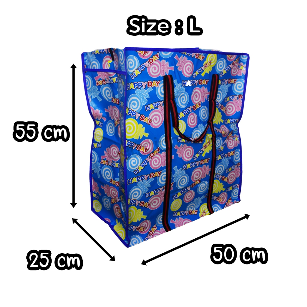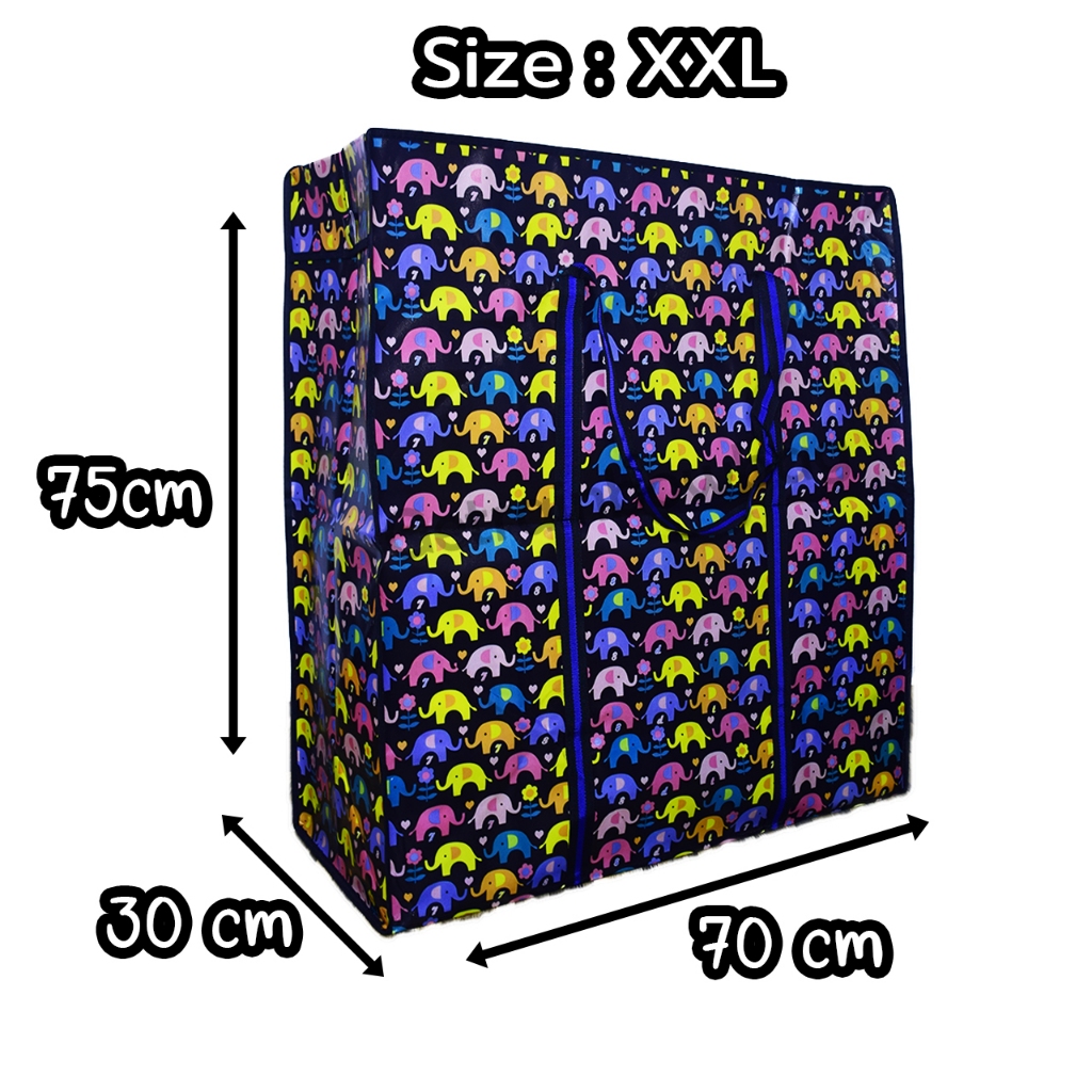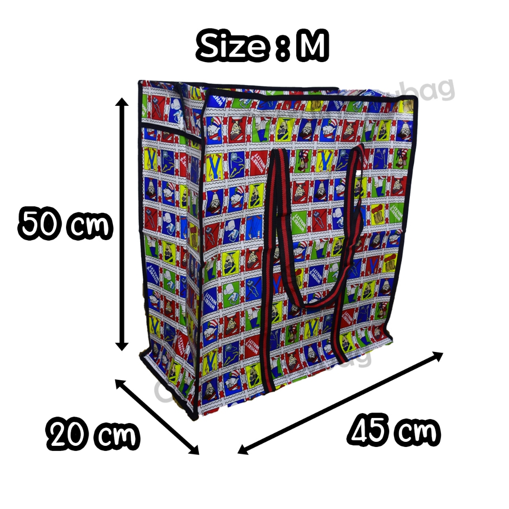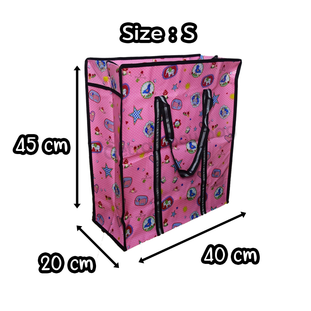 ถุงกระสอบ อย่างหนาลายการ์ตูน หูแข็งแรงมีซิปเปิด-ปิด "คละลาย" !! ส่งไว !! ไซส์ A SS S M L XL XXL