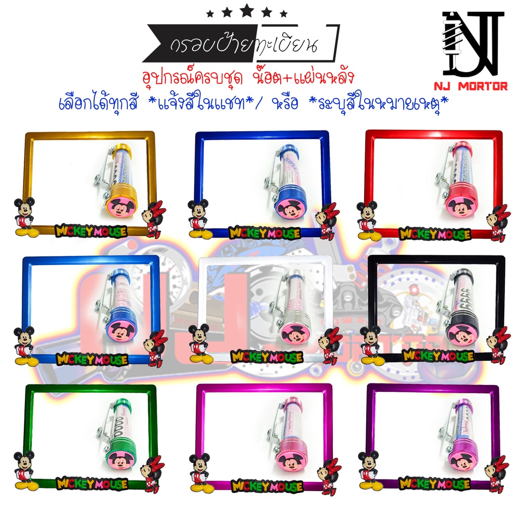 👉9 สี มิกกี้เม้าส์ (ยืน)👉กรอบป้ายทะเบียนรถมอไซค์การ์ตูน👈 👉 (Mickey Mouse) กรอบป้ายทะเบียนรถมอไซค์ + น็อต + แผ่นหลัง