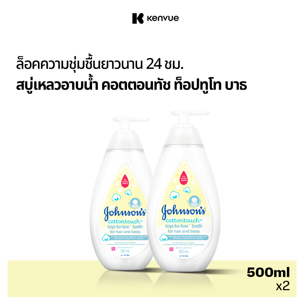 จอห์นสัน ครีมอาบน้ำ คอตตอนทัช ท็อปทูโท บาธ 500 มล. Johnson's Wash Cotton Touch Top To Toe Bath 500 ml x 2 (แพ็คคู่)