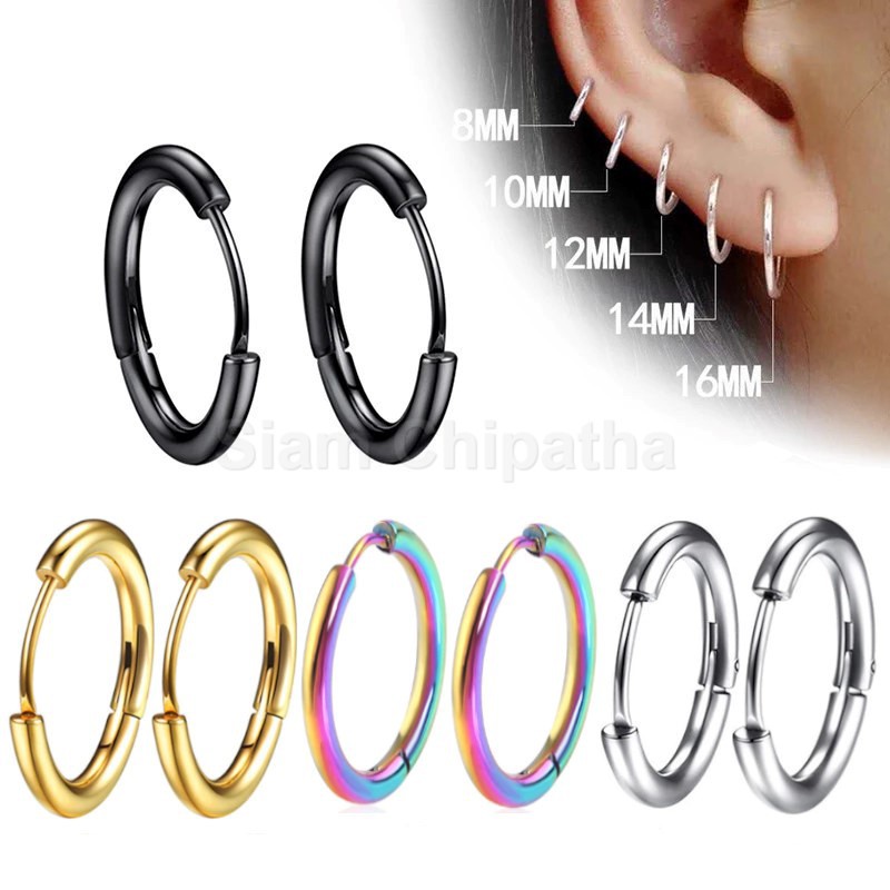 316L จิวหู ต่างหูสแตนเลส ต่างหูห่วง ต่างหู ตุ้มหู หนา 2.0 มิล - 1 ข้าง | Y-H.H | Simple Hoop Earrings for Women - 1 Pc