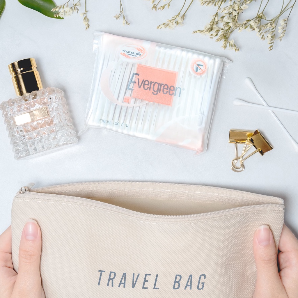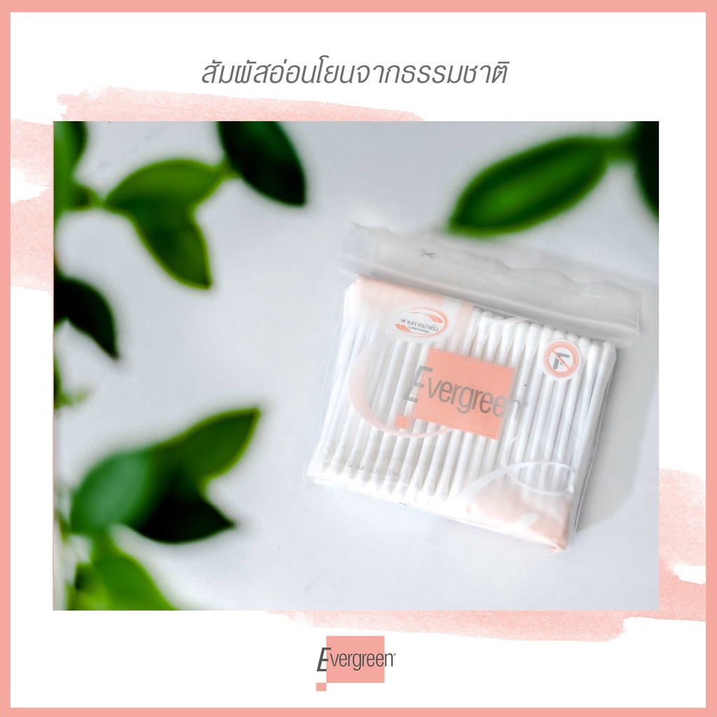 ขายยกแพ็ค เอเวอร์กรีน สำลีก้าน 100 ก้านถุง - แพ็ค 12 ชิ้น / Evergreen Cotton Bud 100 pcs. (Pack 12)