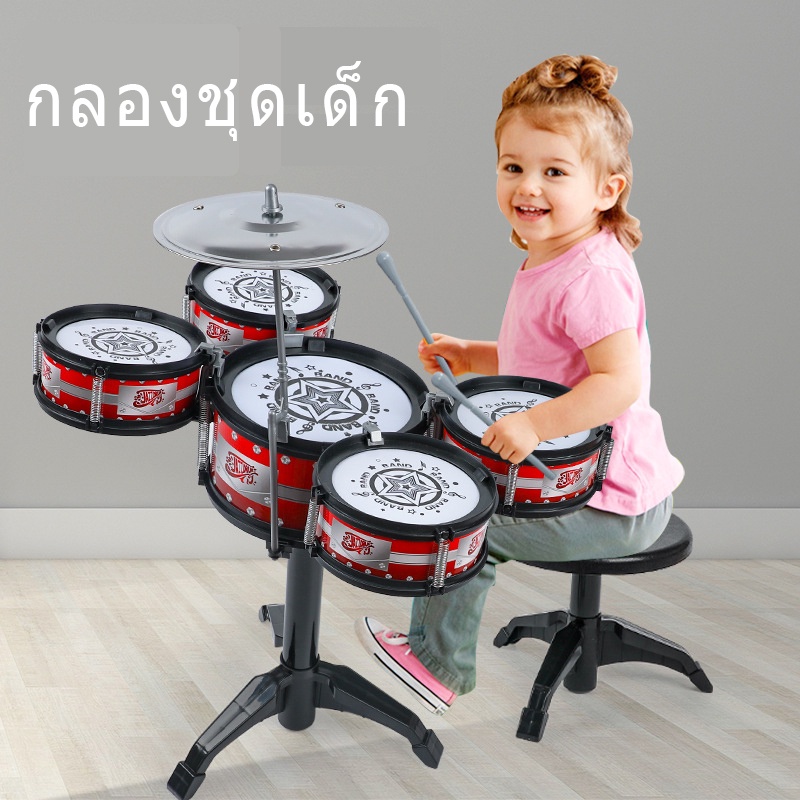 กลองชุดเด็กสมจริง กลองของเล่น กลองชุดของเล่น กลอง กลองชุด กล่องใหญ่5ใบ กลองชุดใหญ่5ใบ กลองชุดเด็ก 5 ใบ พร้อมเก้าอี้นั่ง