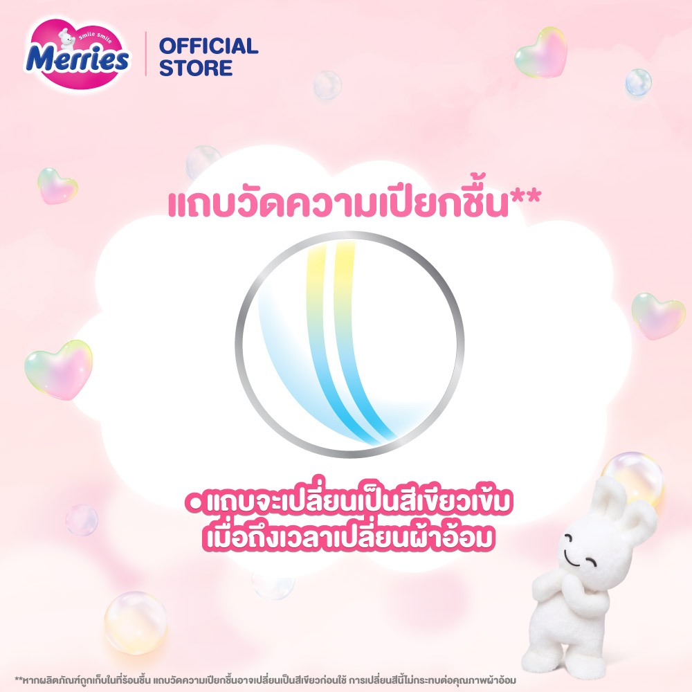 ... ่ปุ่นแนะนำ^ เป็นผ้าอ้อมที่มีคุณภาพที่ได้รับการทดสอบภายใต้การควบคุมของผู้เชี่ยวชาญด้านผิวหนัง และได้รับรางวัลการออกแบบยอดเยี่ยม Good Design Award จากญี่ปุ่น เมอร์รี่ส์ ได้พัฒนาผิวหน้าให้นุ่มพิเศษ ซึบซับดีเยี่ยม ผิวลูกยังคงแห้งสบายแม้เคลื่อนไหวมาก คุณสมบัติพิเศษ • ชั้นระบายอากาศดีเยี่ยมรอบตัว พร้อมรูระบายอากาศกว่า 5 พันล้านรู*ระบายอากาศบนชั้นผ้าอ้อม • ช่องระบายอากาศรอบเอว ช่วยระบายความอับชื้นโดยตรง ผ่านช่องระบายอากาศรอบเอวและผิวลูกน้อย • Fluffy air-in cushion ผิวหน้านุ่มพิเศษ** ที่สัมผัสผิวลูก พัฒนาผิวหน้าเวฟวี่**ให้นุ่มยิ่งขึ้น อากาศไหลผ่านทั่วผิวลูกน้อย จึงแห้งสบายทั้งวัน แม้เคลื่อนไหวมาก • ขอบเอวสุดนุ่มยืดหยุ่นแนบสรีระและพอดีตัว ใส่สบาย ไม่รัดแน่นจนเกินไป ให้ลูกน้อยเคลื่อนไหวได้สนุกสนาน นุ่มสบายไม่เลื่อนหลุด • ซึมซับได้ดีเยี่ยม แห้งสบาย ดูดซับและกักเก็บปัสสาวะอย่างรวดเร็ว แม้ปริมาณมากป้องกันปัญหารั่วซึมอย่างมีประสิทธิภาพ • แถบวัดความเปียกชื้น^^ ช่วยเตือนคุณแม่ โดยแถบจะเปลี่ยนเป็นสีเขียวเข้มเมื่อถึงเวลาเปลี่ยนผ้าอ้อมให้ลูกน้อย Merries Japan: Super Jumbo • ไซส์ XL จำนวน 38 ชิ้น x3 แพ็ค ส่วนประกอบ Top Sheet,Absorbent Pad,Back Sheet , Elastic , Hot Melt Adhesive ^ แบรนด์ผ้าอ้อมที่แม่ญี่ปุ่นแนะนำ ด้วยรางวัลจาก Japan Mothers Association 14th Mothers Selection Award 2022 *จากการประเมินด้วยภาพจากเครื่องจุลทรรศน์อิเล็กตรอนแบบส่องกราดแปลงค่าเป็น 1 ผืนผ้าอ้อม ^^แถบวัดความเปียกชื้นอาจเปลี่ยนเป็นสีเขียวก่อนใช้ หากผลิตภัณฑ์ถูกเก็บในที่ร้อนหรือชื้น การเปลี่ยนสีก่อนใช้จะไม่ส่งผลกระทบต่อคุณภาพของผ้าอ้อม ยกเว้นขนาด XXL **มีเฉพาะแบบกางเกงไซส์ S และ M เพื่อผิวที่บอบบางของลูกน้อย #MerriesThailand #ยิ้มได้ไม่แพ้แม่คอนเฟิร์ม #อ่อนโยนไม่อับชื้นที่1ในใจแม่ เก็บรักษาได้นาน 3 ปี นับหลังจากวันที่ผลิต