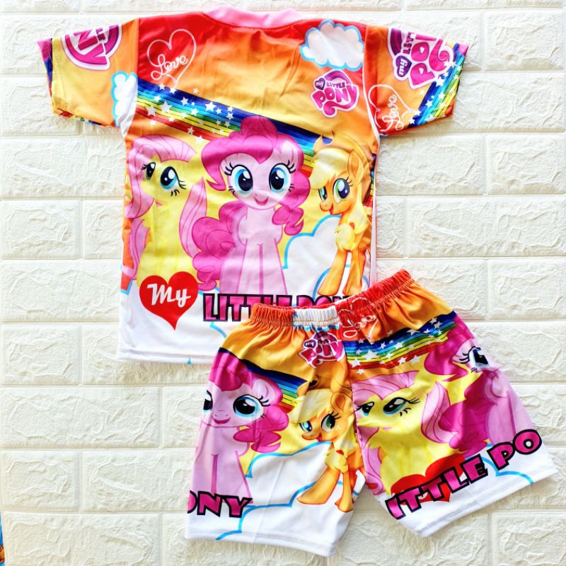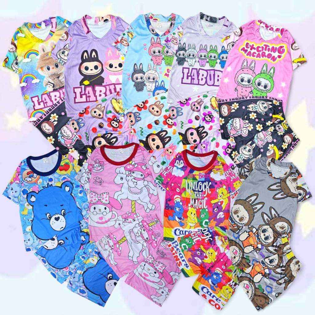 ชุดเด็ก ชุดเสื้อแขนสั้น+กางเกงขาสั้น ผ้าไมโคร ลายการ์ตูนสกรีนสีสดใส สำหรับเด็กผู้หญิง 9 เดือน - 4 ขวบ MIC0018