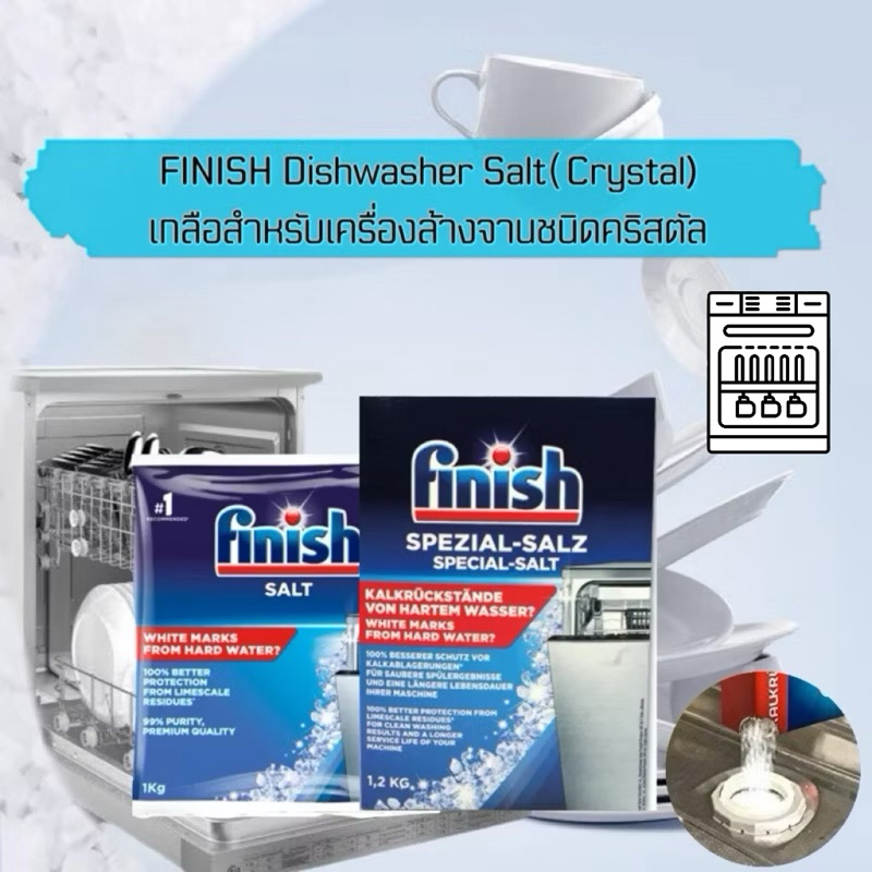 ... ่องล้างจานได้อย่างรวดเร็ว ฟินิช ซอลท์ เกลือคุณภาพสูงที่มีความบริสุทธ์กว่า 99% สำหรับเครื่องล้างจานอัตโนมัติ ใช้ได้กับเครื่องล้างจานทุกรุ่นทุกยี่ห้อ 🔸 เหมาะสำหรับการลดความกระด้างของน้ำในการล้างแต่ละครั้งและช่วยให้เครื่องล้างจานไม่เหม็นคาว ⚠️ก่อนเติมเกลือครั้งแรก ควรเติมน้ำลงในช่องใส่เกลือของเครื่องล้างจานตามปริมาณที่คู่มือแนะนำ