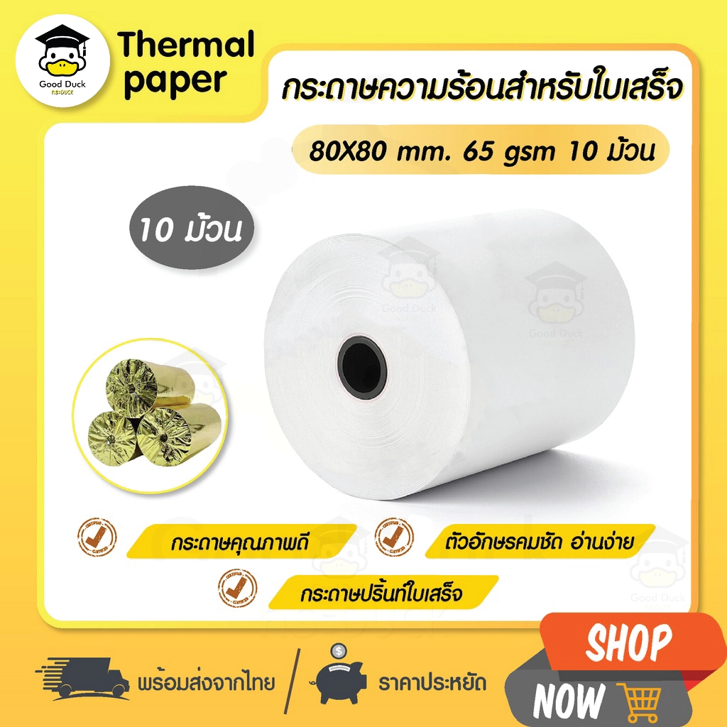ðĨāļāļđāļāļŠāļļāļāđ āļāļĢāļ°āļāļēāļĐāļāļ§āļēāļĄāļĢāđāļāļ 80x80 mm 10 āļĄāđāļ§āļ āļāļĢāļ°āļāļēāļĐāđāļāđāļŠāļĢāđāļ Thermal 65gsm āļāļīāļĨ āļĢāļēāļāļēāļāļđāļ Bill ocha sunmi deliveryfood POS