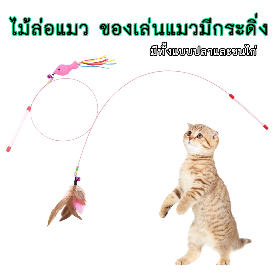PP-055 ไม้ล่อแมว ของเล่นแมว สุนัข หมา มีเสียงกระดิ่ง ปลา,ขนไก่ ดึงดูดความสนใจของสัตว์เลี้ยง