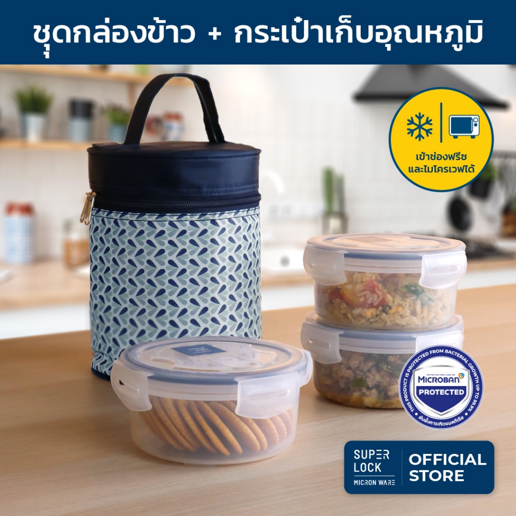Super Lock กล่องถนอมอาหารพร้อมกระเป๋า รุ่น 6003-CCC รวม 6 ชิ้น (3 กล่อง) กล่องป้องกันแบคทีเรีย BPA Free เข้าไมโครเวฟได้