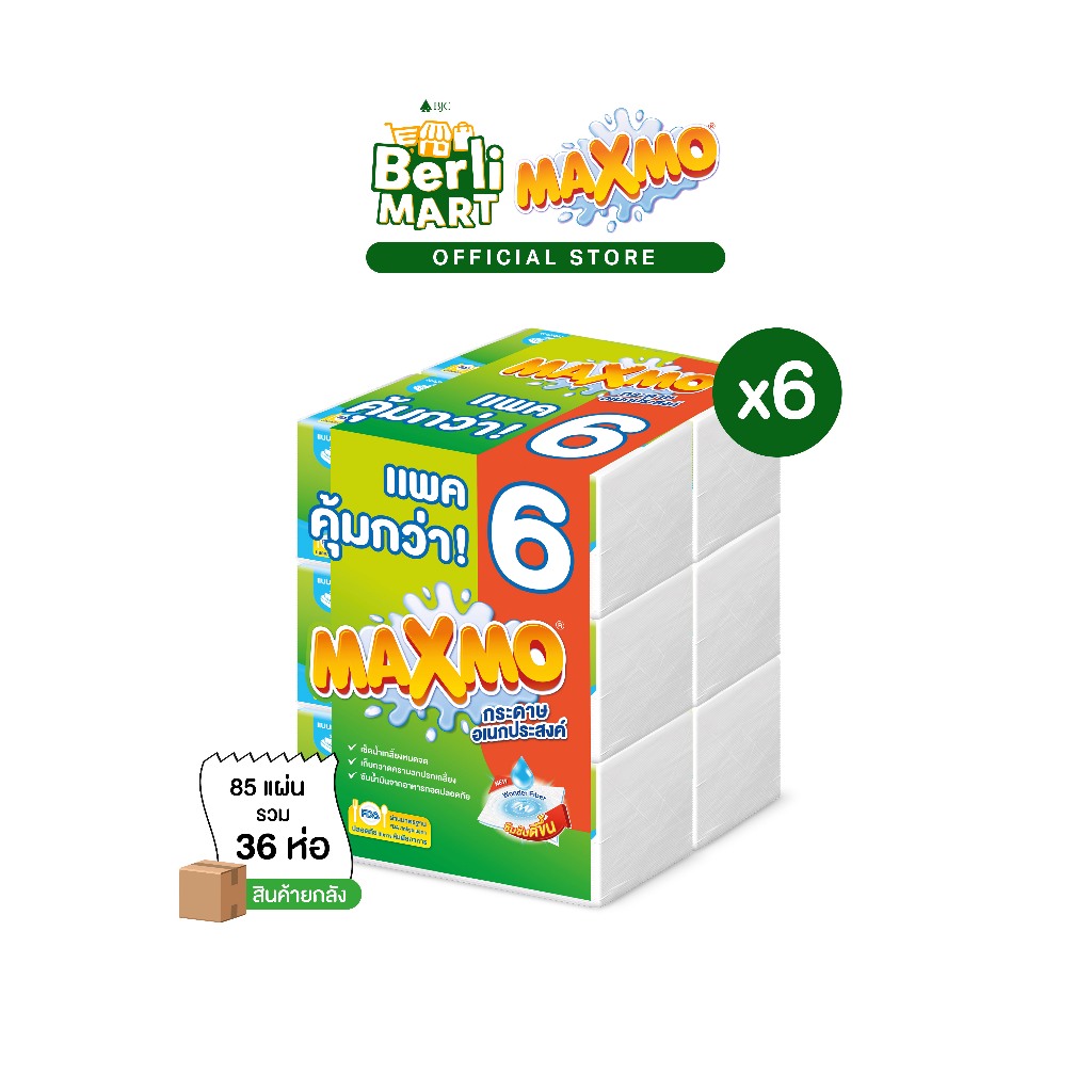 [ยกลัง]แม๊กซ์โม่แบบแผ่น 85 แผ่น แพ็ก 6 [ยกลัง]Maxmo Interfolded Towel 85'S P.6 กระดาษซับเอนกประสงค์ แบบแผ่น