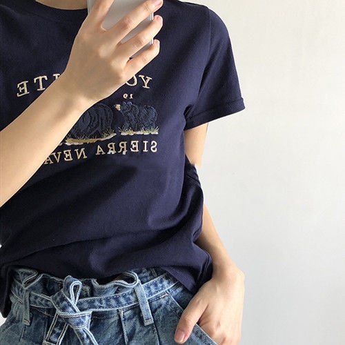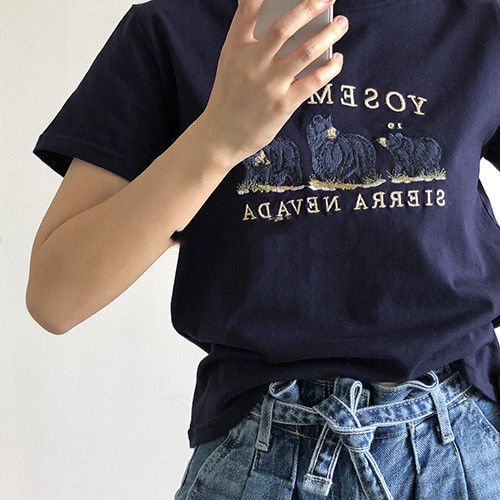 Bh เสื้อยืด แขนสั้น ผ้าฝ้าย ลายหมี สไตล์เกาหลี แฟชั่นฤดูร้อน สําหรับผู้หญิง