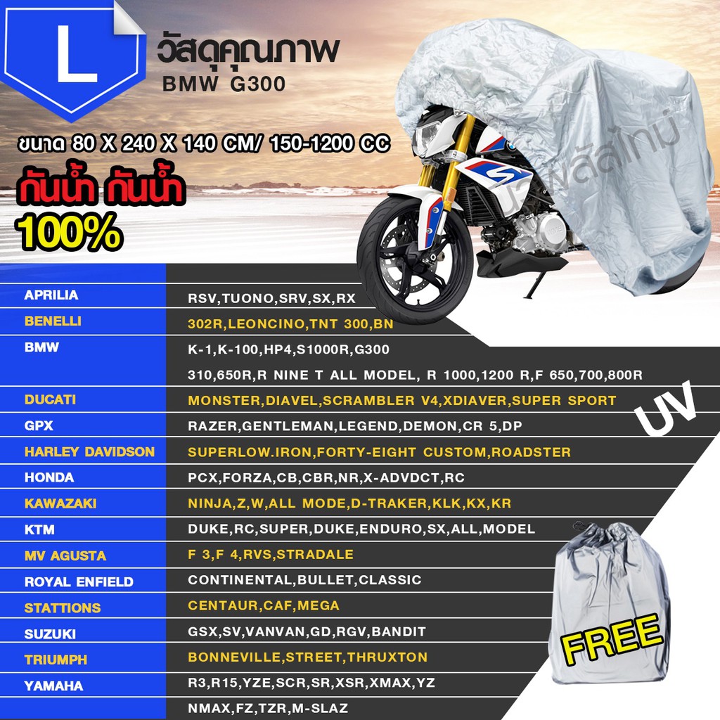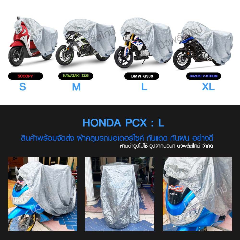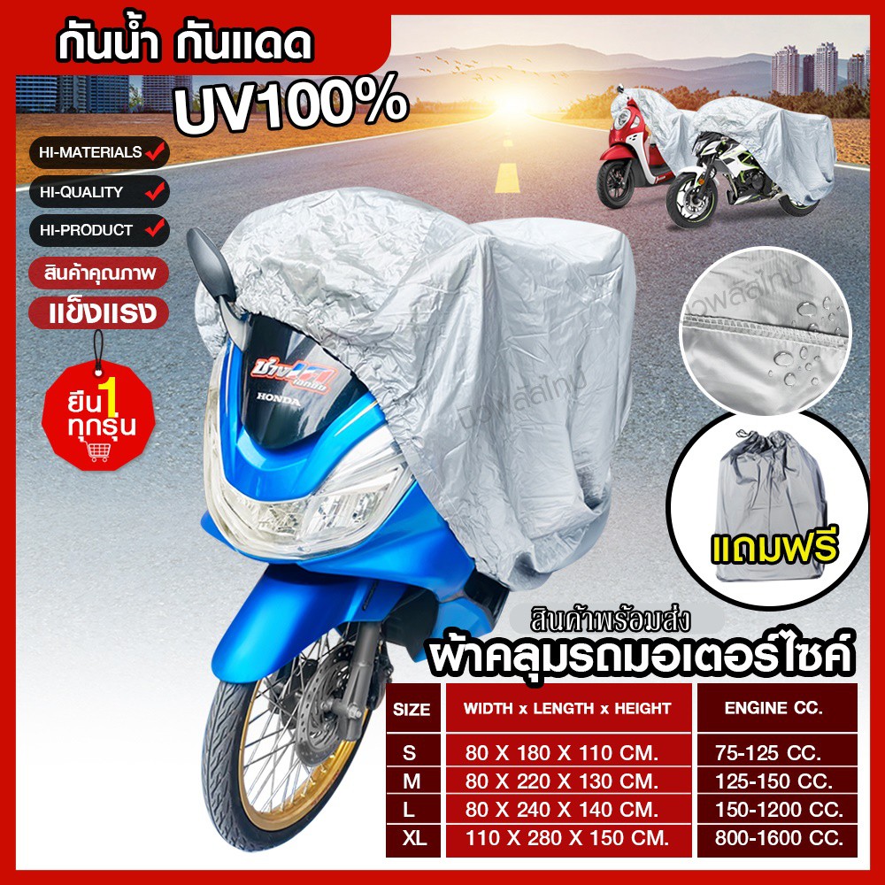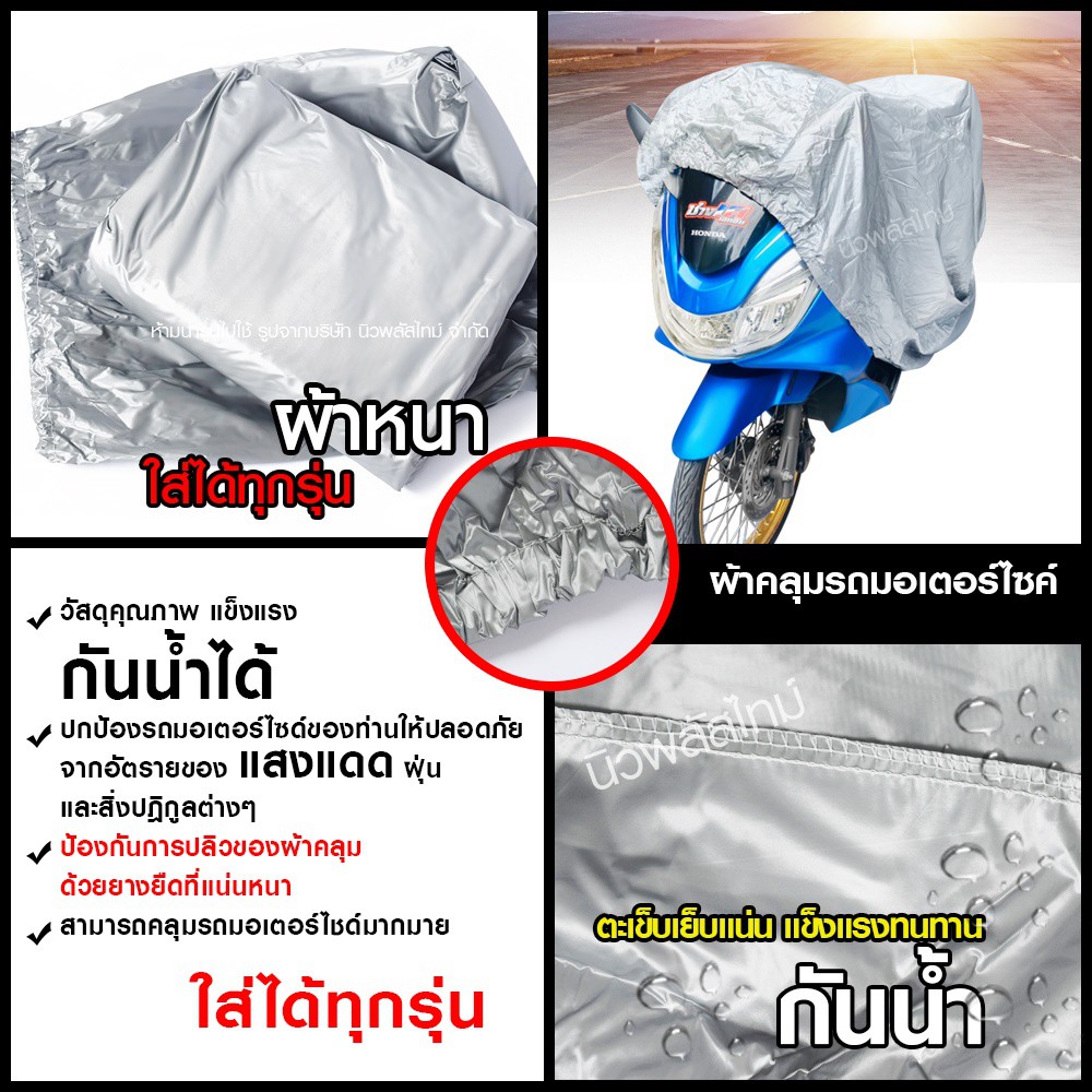 Product details of 【M/L/XL/XXL】ผ้าคลุมรถมอไซ กันแดดกันน้ำได้ ถุงคลุมรถมอไซ ทุกรุ่น ผ้าคลุมมอไซค์ ผ้าคลุมรถจยย ที่คลุมรถมอไซ ผ้าคลุมรถจักรยานยนต์ honda PCX BigBike ทำจากวัสดุ PVC อย่างดี ทนแดด กันฝน ใช้งานง่ายและ พับเก็บง่าย ลดความร้อนและอบอ้าวของรถ ปกป้องและยืดอายุการใช้งานของสีรถ เบาะรถ ยางแล