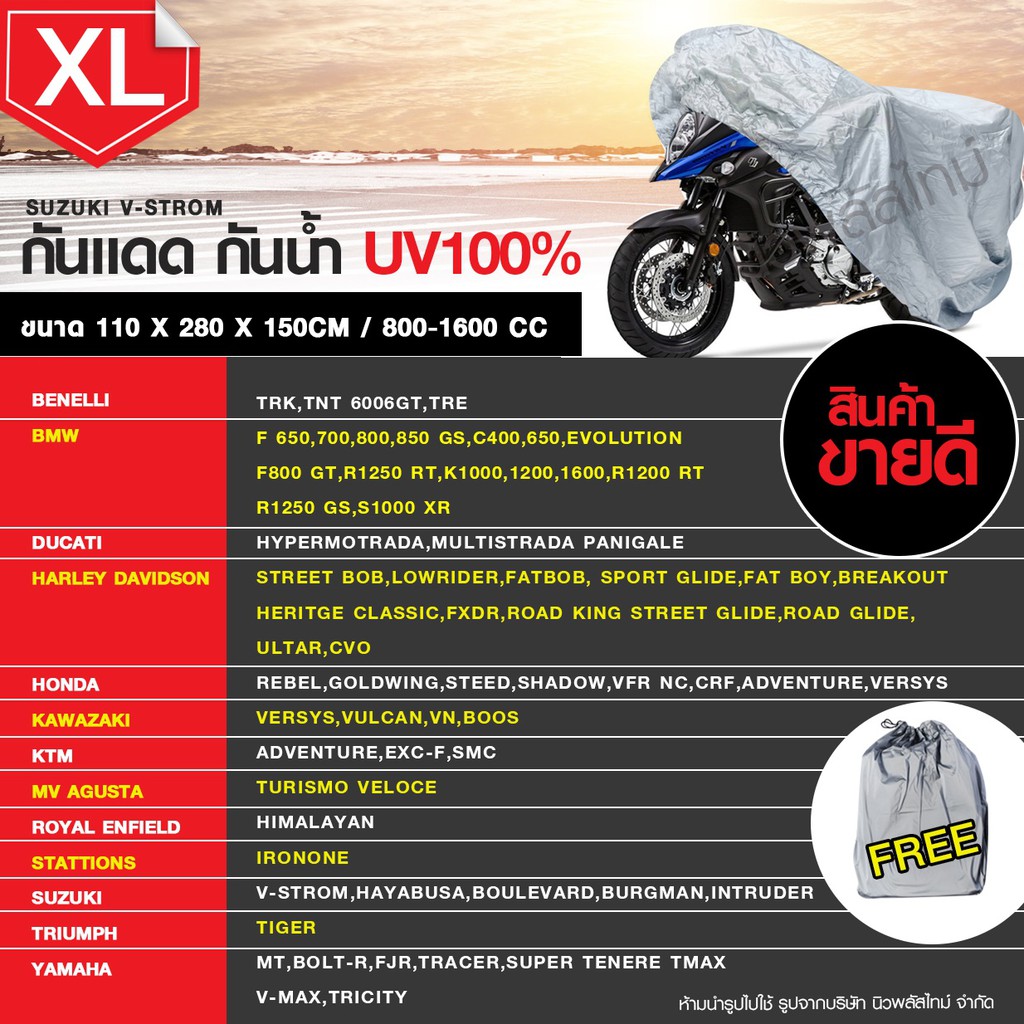 [ลูกค้าใหม่ 1 บาท] M/L/XL/XXL ผ้าคลุมมอเตอร์ไซค์ ผ้าคลุมรถมอไซ กันแดด กันน้ำได้ รถจยย รถจักรยาน มีถุงใส่ผ้าคลุม