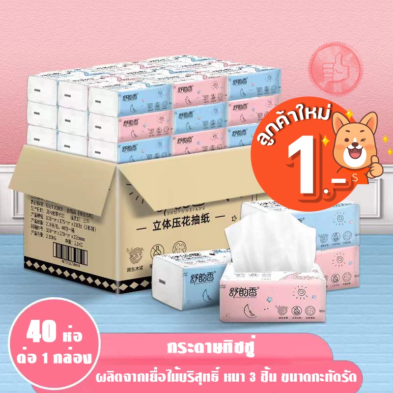 (ราคาลูกค้าใหม่) กระดาษทิชชู่ ยกลัง (1ลังมี40ห่อ) 1ห่อมี210 แผ่น ไร้ฝุ่น กระดาษเช็ดหน้าไม่เป็นขุย ไม่ยุ่ยง่ายราคาถูก D40