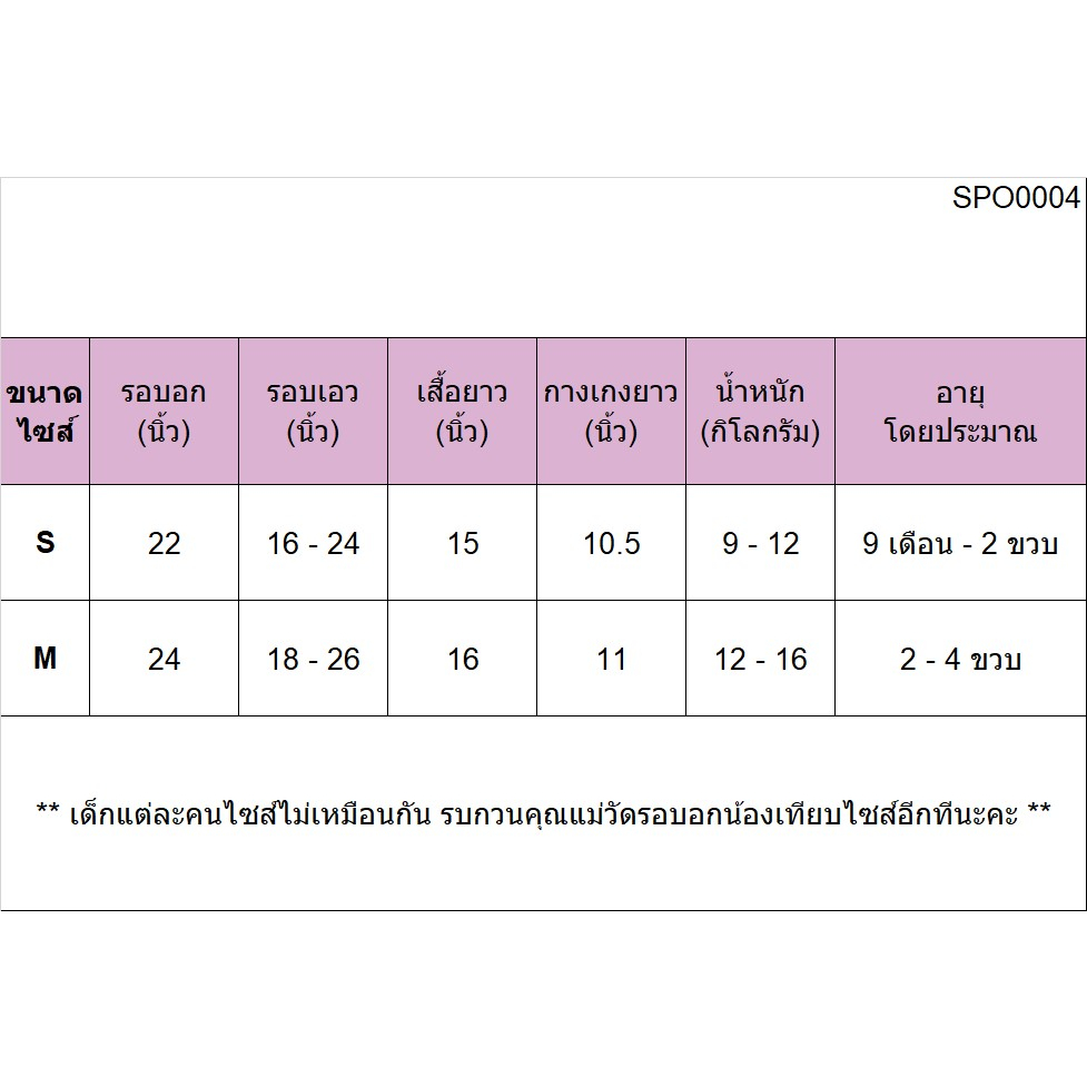 ... ขวบ น้ำหนักประมาณ 8-12 กิโลกรัม รอบอก 22 นิ้ว เสื้อยาว 15 นิ้ว กางเกงยาว 10.5 นิ้ว 🚩ไซส์ M สำหรับน้องอายุ 2-4 ขวบ น้ำหนักประมาณ 12-16 กิโลกรัม รอบอก 24 นิ้ว เสื้อยาว 16 นิ้ว กางเกงยาว 11 นิ้ว ** เด็กแต่ละคนไซส์ไม่เหมือนกัน รบกวนคุณแม่วัดรอบอกน้องอีกทีนะคะ ** หมายเหตุ: ⏩ ทางร้านจัดส่งสินค้า ทุกวันจันทร์ - วันเสาร์ หยุดทุกวันอาทิตย์ สินค้าพร้อมส่งทุกรายการ ⏩ ตัดรอบเวลา 14.00 น. คำสั่งซื้อที่ได้รับหลังจากเวลาตัดรอบ จะถูกจัดส่งวันทำการถัดไป ⏩ ระยะเวลาในการจัดส่ง ขึ้นอยู่กับพื้นที่ปลายทาง ภาคกลาง 1-2 วัน ภาคอื่นๆ 2-3 วัน และพื้นที่ห่างไกลอาจใช้เวลาจัดส่งนานกว่าปกติ ⏩ หากสินค้ามีปัญหา ขอความกรุณาแจ้งทางร้านได้ทันที เพื่อจะได้ประสานงานดำเนินการแก้ไข ⏩ ซื้อไปแล้วถูกใจ สินค้าคุณภาพดีสมราคา จัดส่งไม่ล่าช้า ขอความกรุณากดให้คะแนนร้าน ให้ด้วยนะคะ 🙏🙏🙏ขอบพระคุณมากๆ ค่ะ🙏🙏🙏🥰 #ชุดเด็ก #เสื้อเด็ก #ชุดเด็กราคาถูก #ชุดกีฬาเด็ก #ชุดบอลเด็ก #เสื้อแขนสั้น #ชุดนอนเด็ก #ชุดอยู่บ้านเด็ก #ชุดเด็กหน้าร้อน #ชุดใส่เล่น #ผ้ามัน #ผ้าไมโคร #นุ่มลื่น #ใส่สบาย